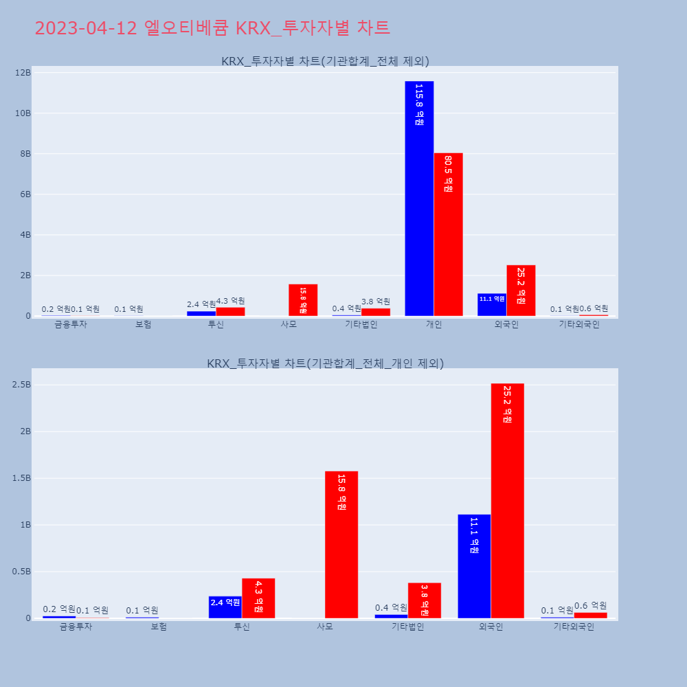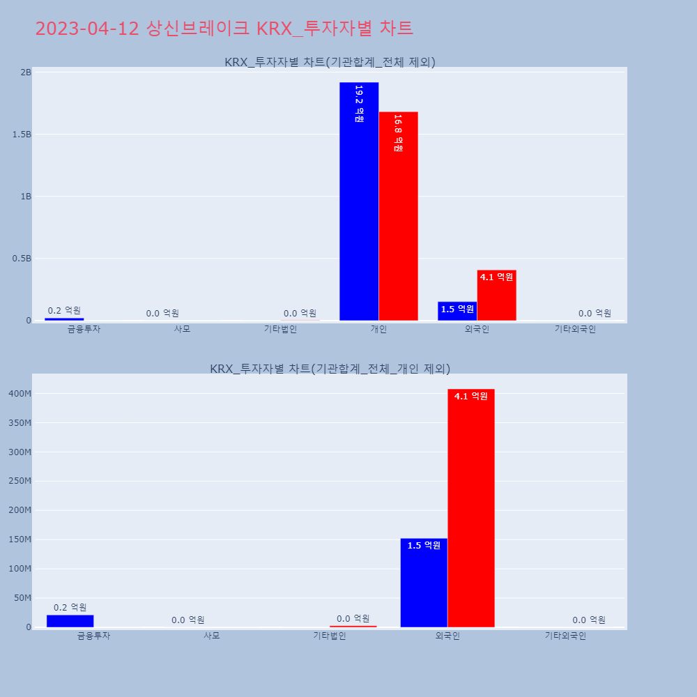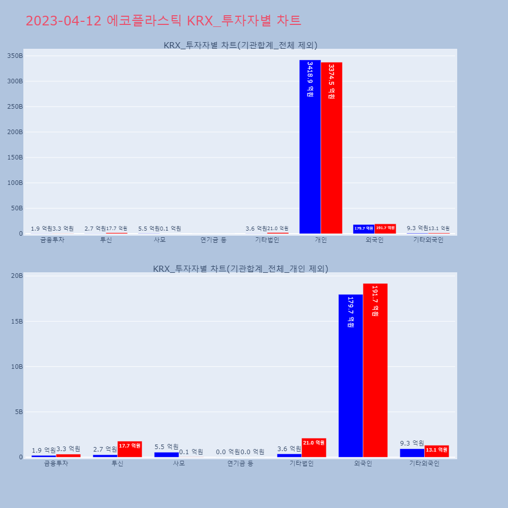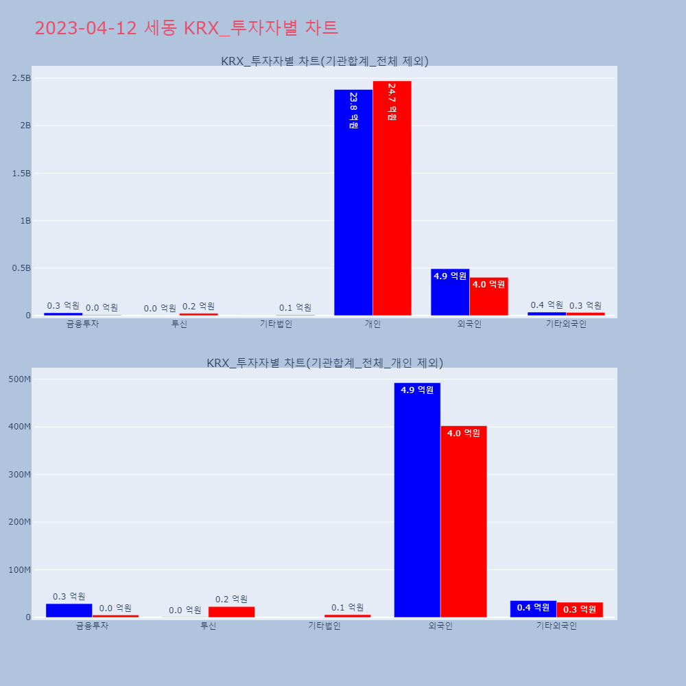 | 투자기관 | 매도량/금액(백) | 매수량/금액(백) | 순매수량/금액(백) |