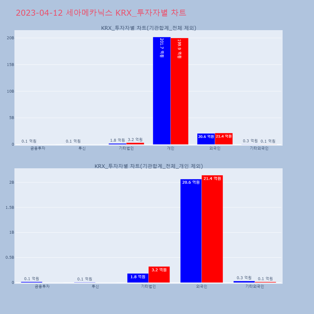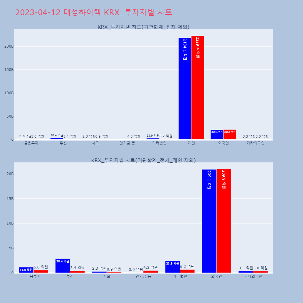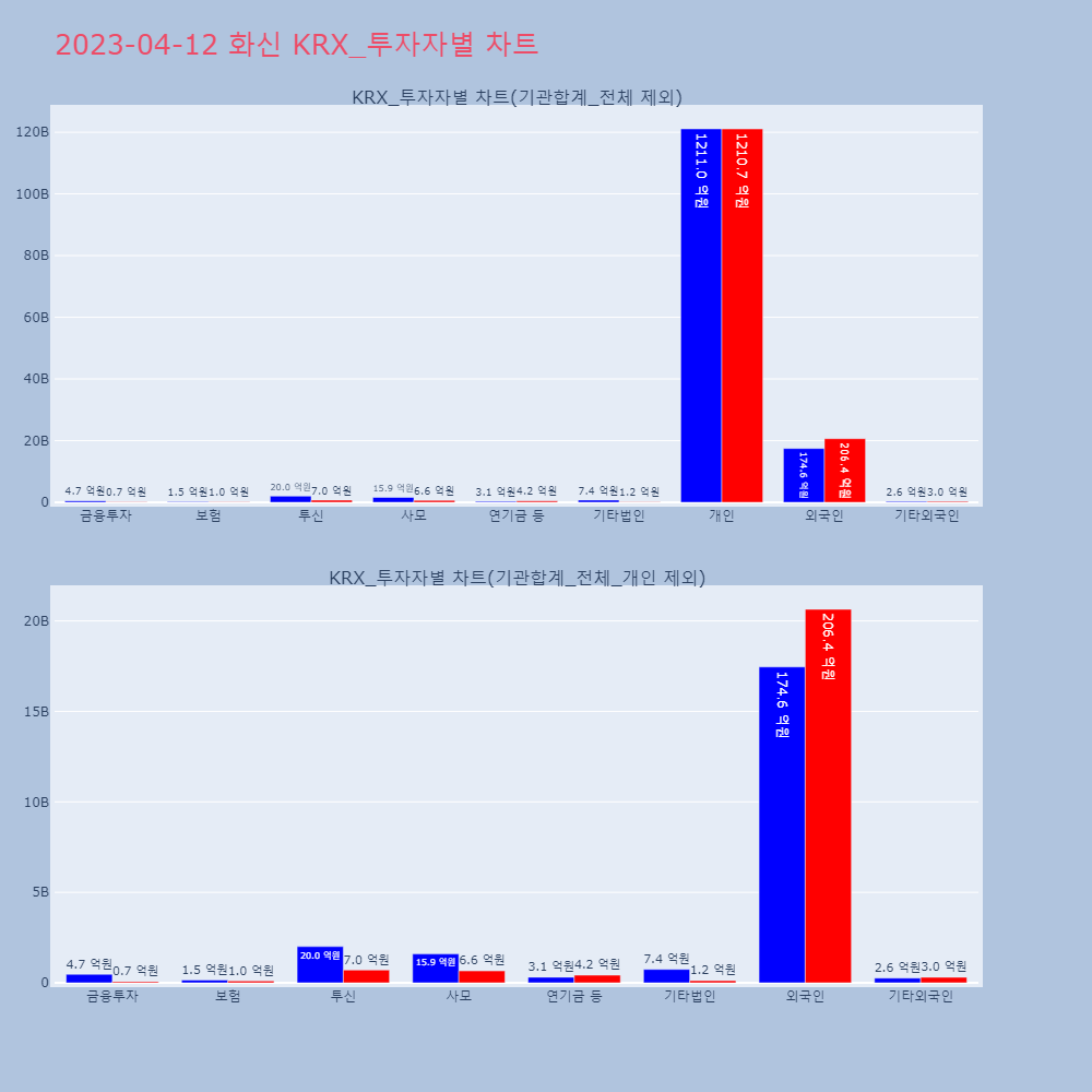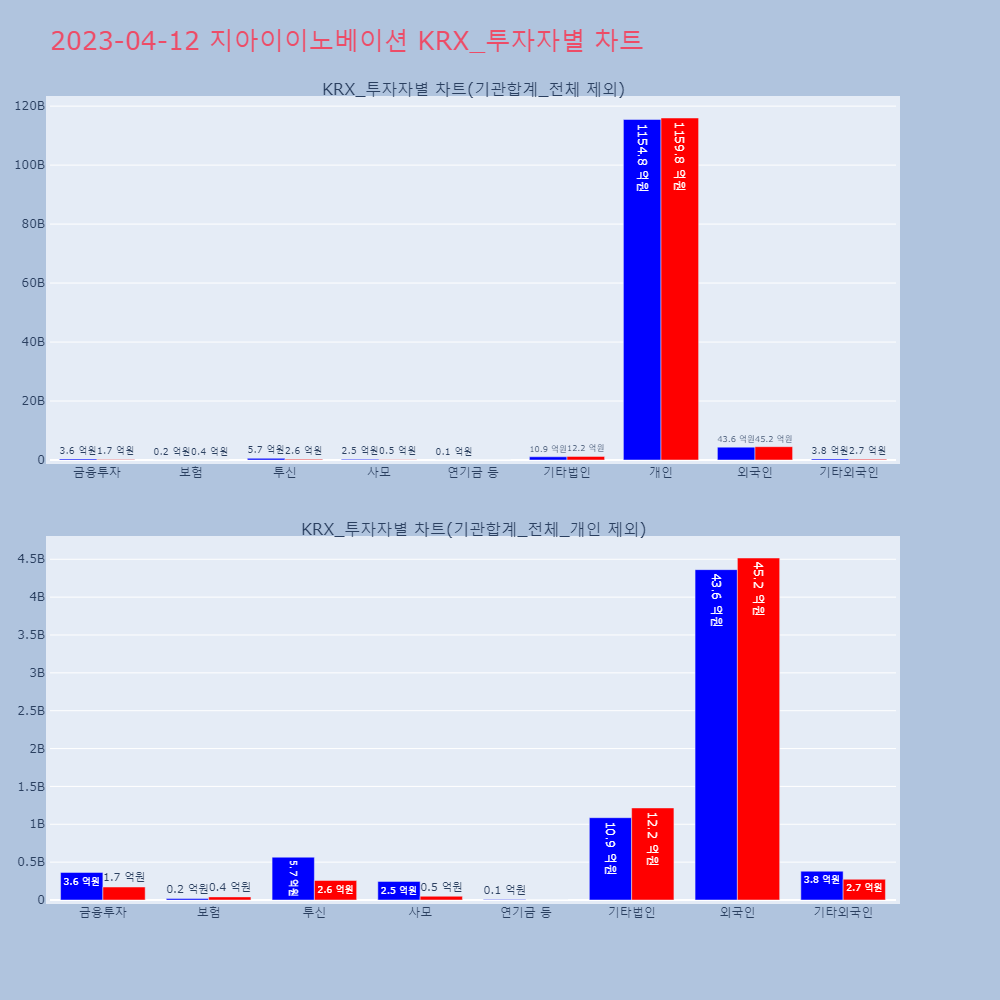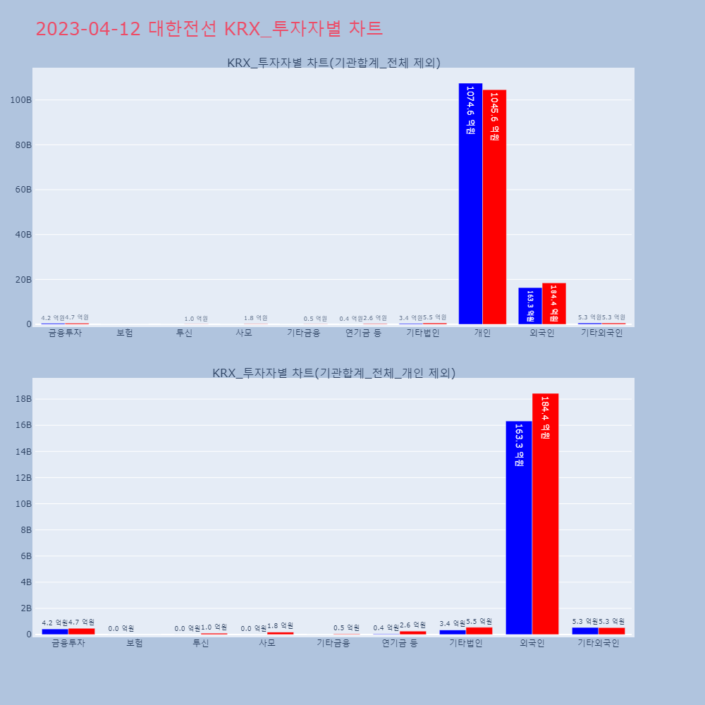 | 투자기관 | 매도량/금액(백) | 매수량/금액(백) | 순매수량/금액(백) |