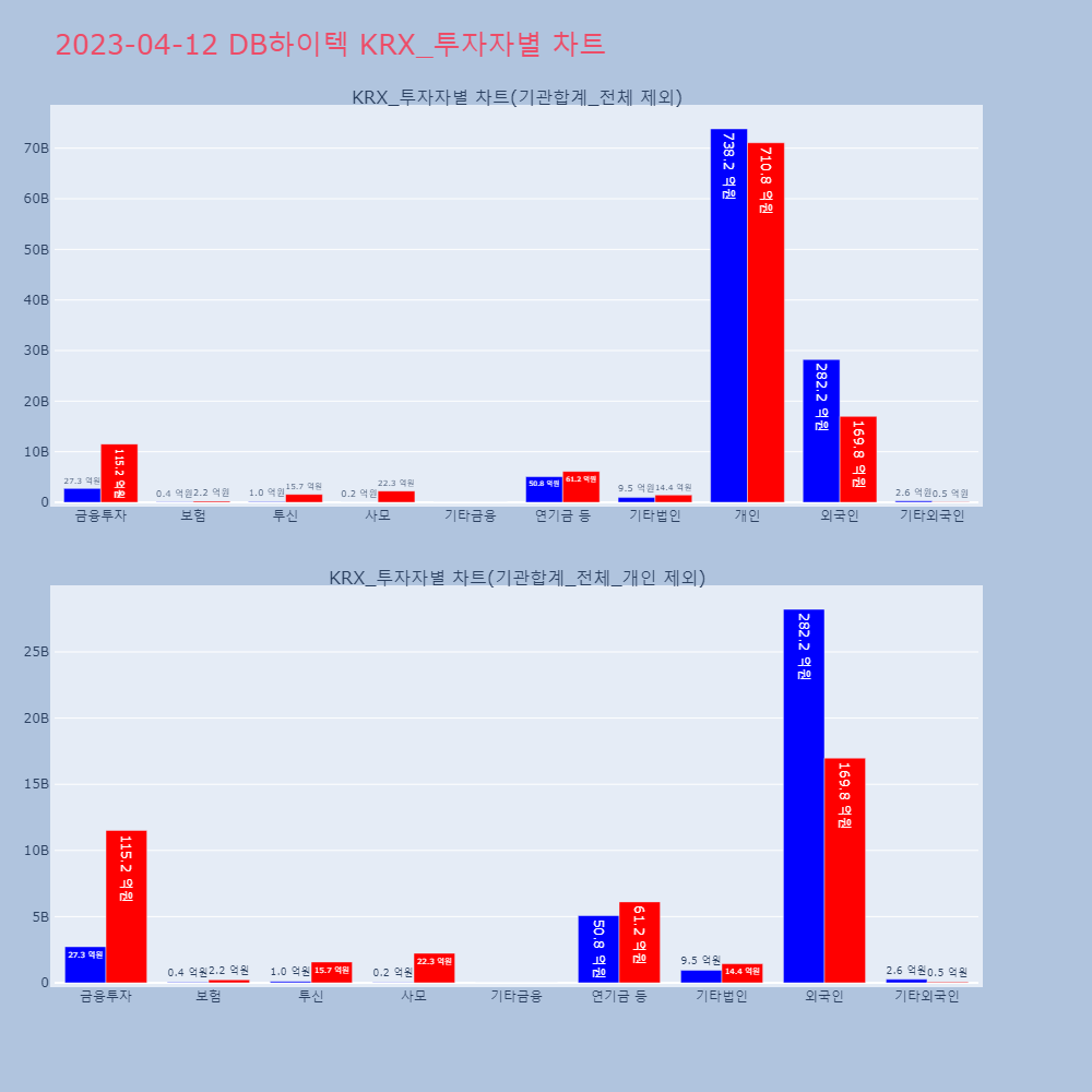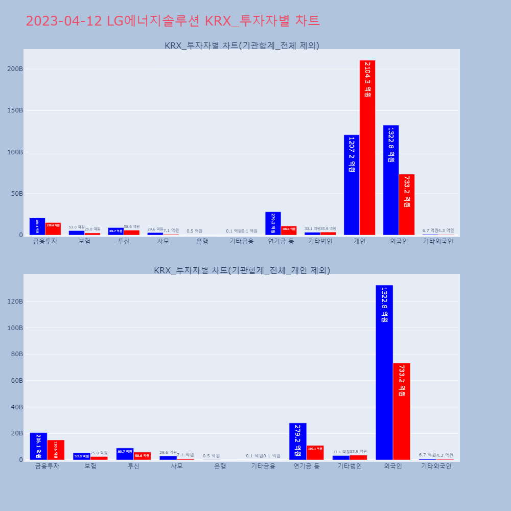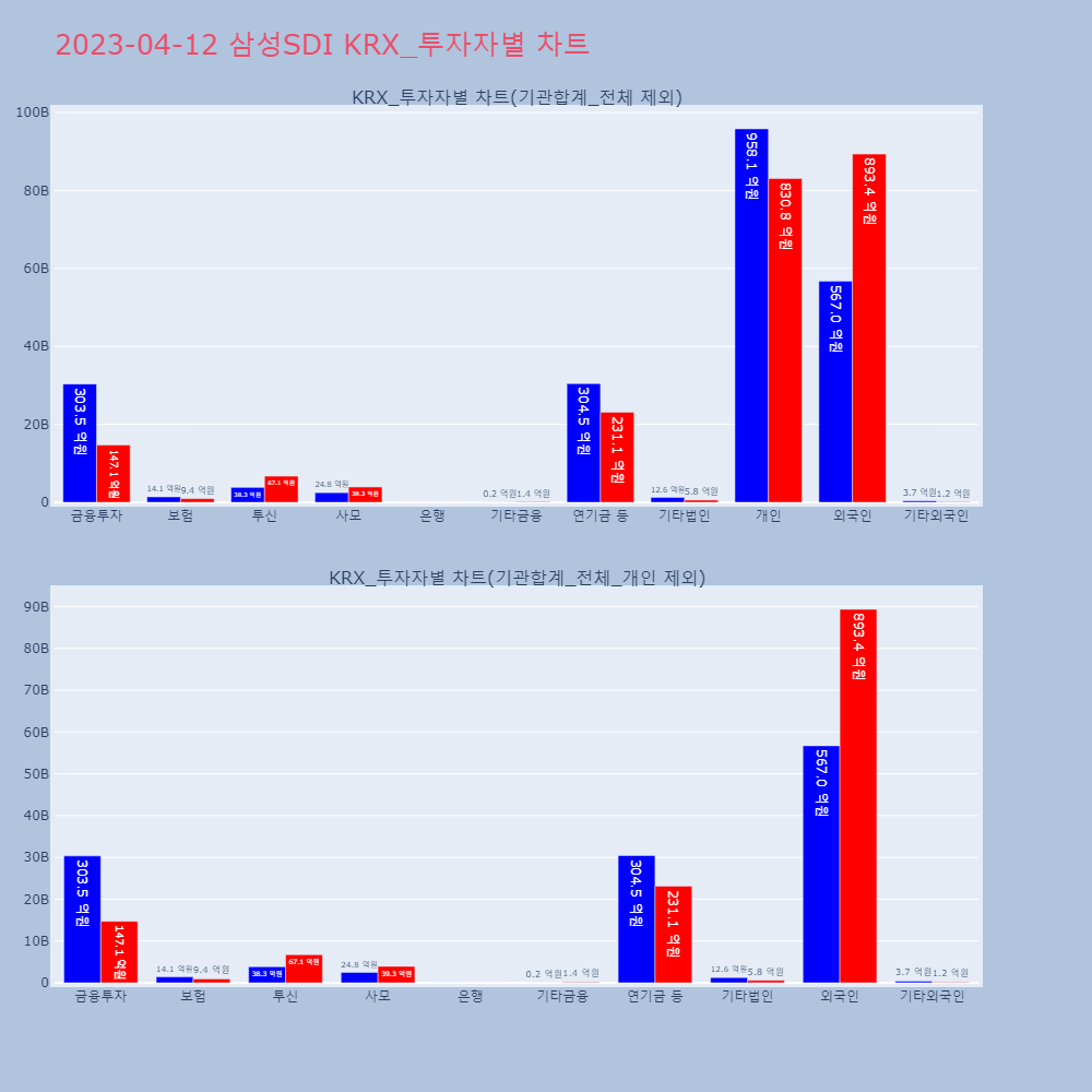 투자기관 | 매도량/금액(백) | 매수량/금액(백) | 순매수량/금액(백) |