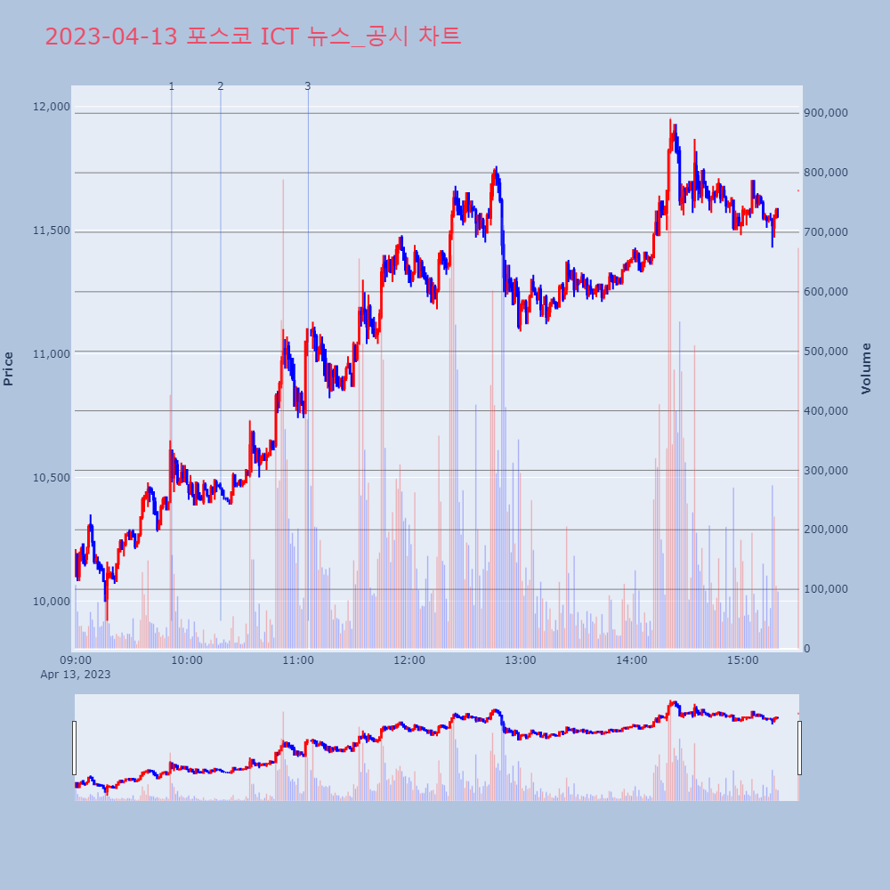 2023. 04. 13 특징주 오파스넷 이화전기 어반리튬 티로보틱스 세아메카닉스 태양금속 라온텍 포스코 ICT 유일로보틱스 엔에스엔