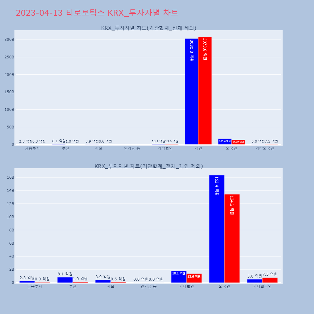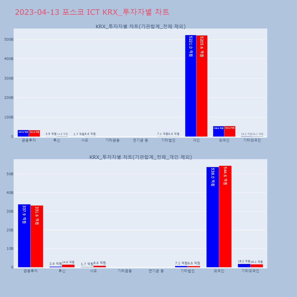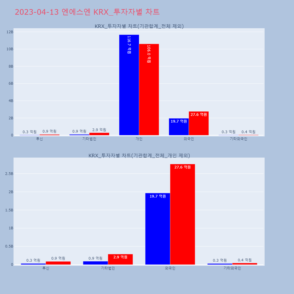 투자기관 | 매도량/금액(백) | 매수량/금액(백) | 순매수량/금액(백) |