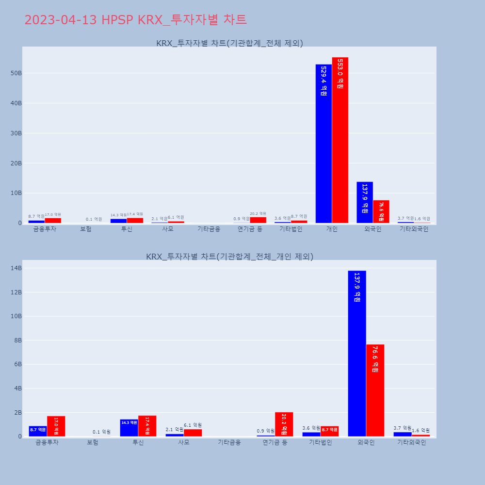 | 투자기관 | 매도량/금액(백) | 매수량/금액(백) | 순매수량/금액(백) |