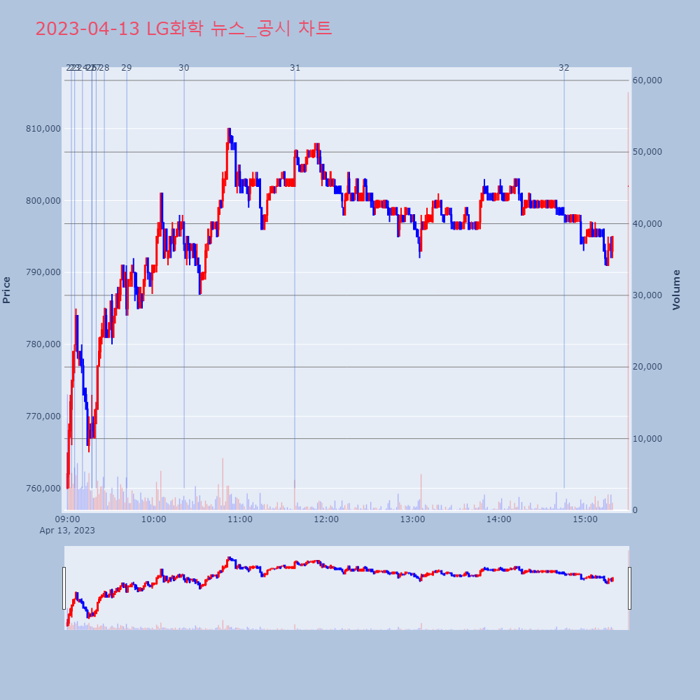 | 32 | [특징주] LG화학, 장후반 3%대 상승…80만원 진입 재시도[이투데이/서지희 기자(jhsseo@etoday.co. | 이투데이 | LG화학 | 2023-04-13 14:45:29 |