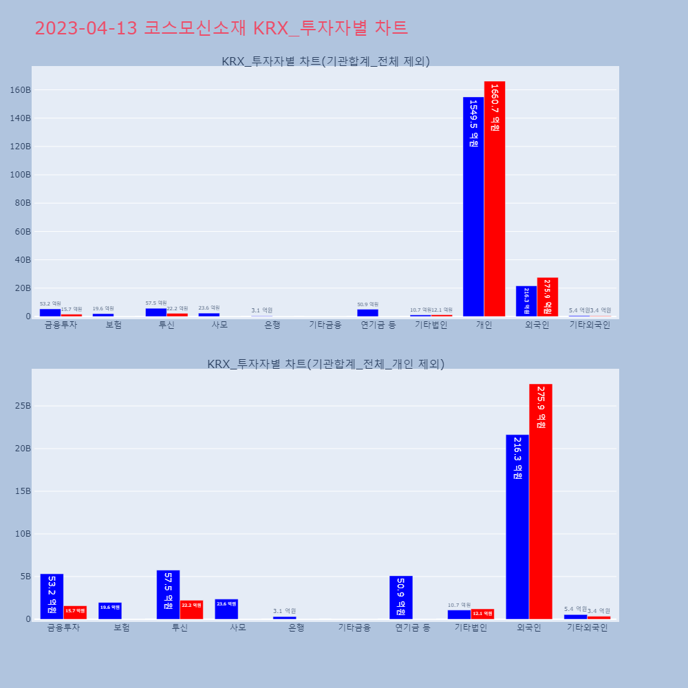 | 투자기관 | 매도량/금액(백) | 매수량/금액(백) | 순매수량/금액(백) |