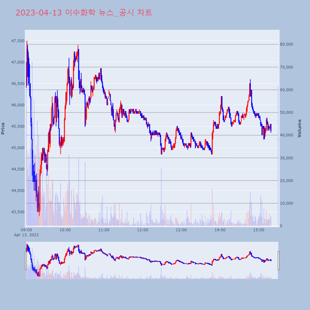 | 8 | 석유화학주 하락 출발, LG화학 -1.49% 제목 :석유화학주 하락 출발, LG화학 -1.49% 석 | 인포스탁 | LG화학 | 2023-04-12 09:02:30 |
