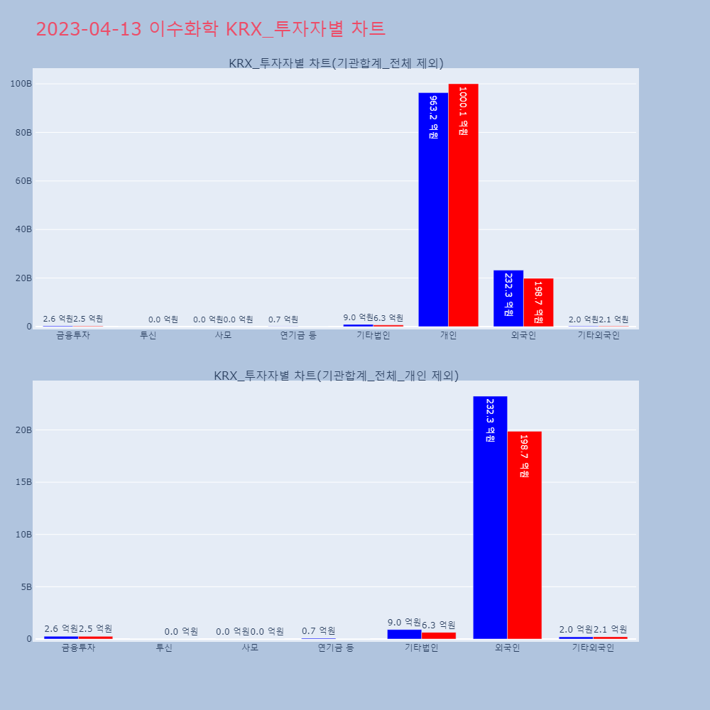2023. 04. 13 시간외 특징주 한주라이트메탈 금양 이수화학 제이스코홀딩스 코스모신소재 디지캡 POSCO홀딩스 SK바이오사이언스 엘앤에프 LG화학