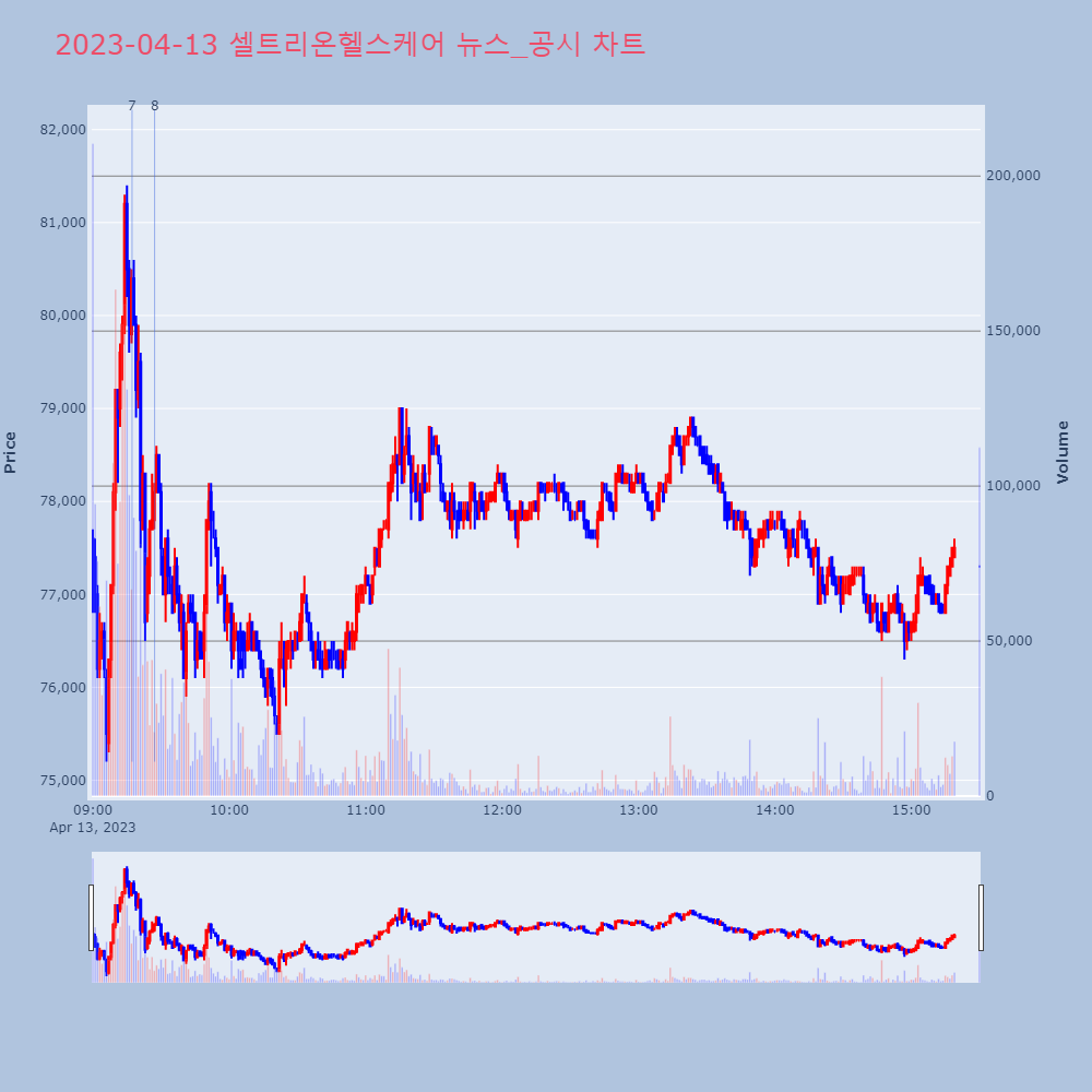 | 7 | '셀트리온헬스케어' 52주 신고가 경신, 비수기임에도 견조한 실적 - 하나증◆ 최근 애널리스트 분석의견- 비수기임에도 견조한 | 한경/증권 | 셀트리온헬스케어 | 2023-04-13 09:17:15 |