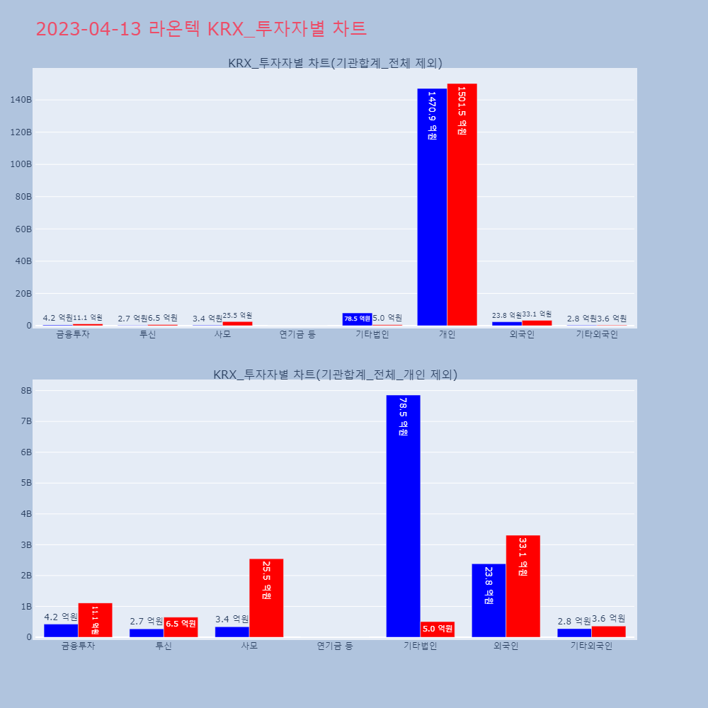 | 투자기관 | 매도량/금액(백) | 매수량/금액(백) | 순매수량/금액(백) |