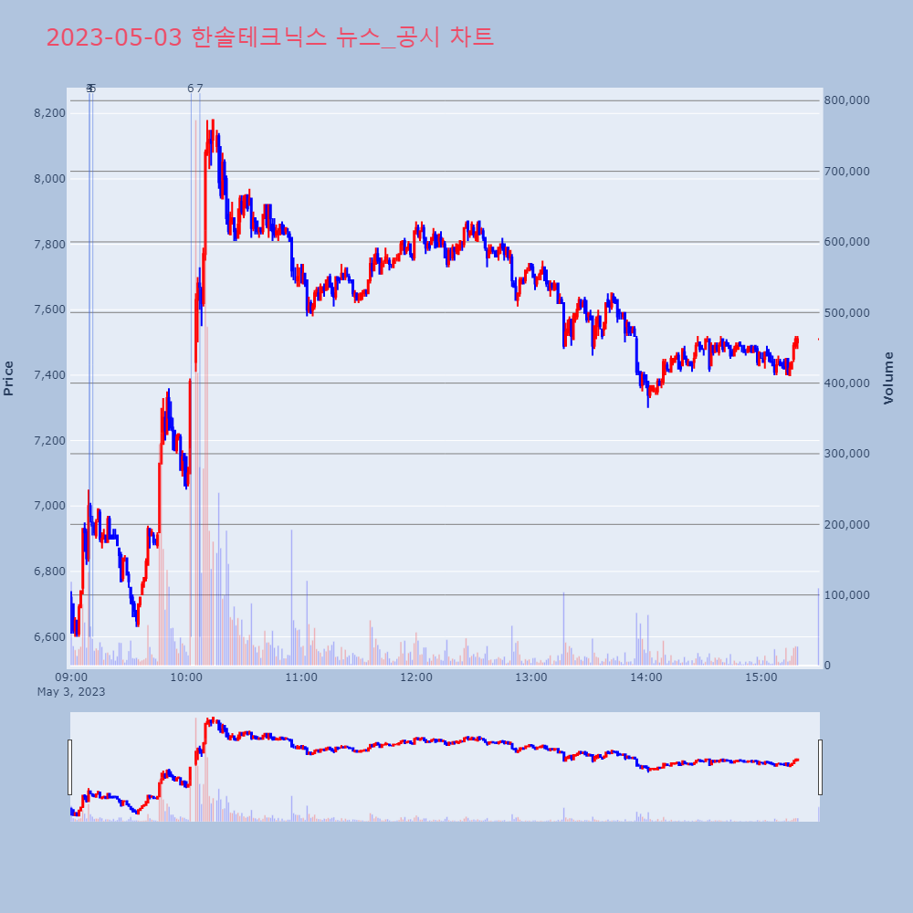 한솔테크닉스(004710) +17.53%[종가: 7,510원]