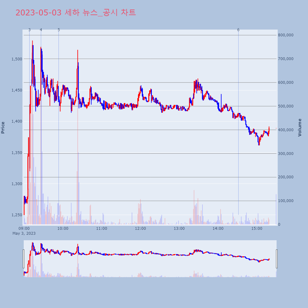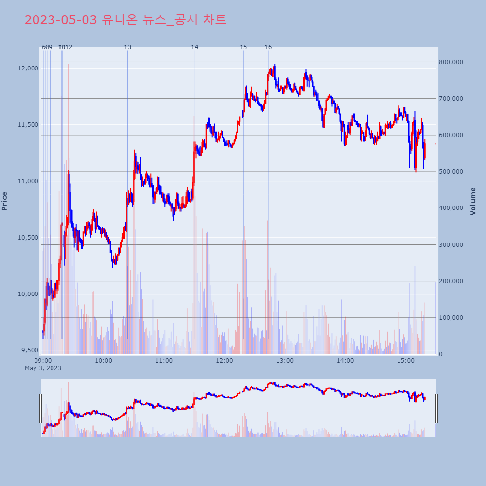 5 | 유니온머티리얼, +13.16% VI 발동유니온머티리얼이 VI가 발동했다. 전일 대비 13.16 | 조선경제 | 유니온머티리얼 | 2023-05-02 13:44:22 |