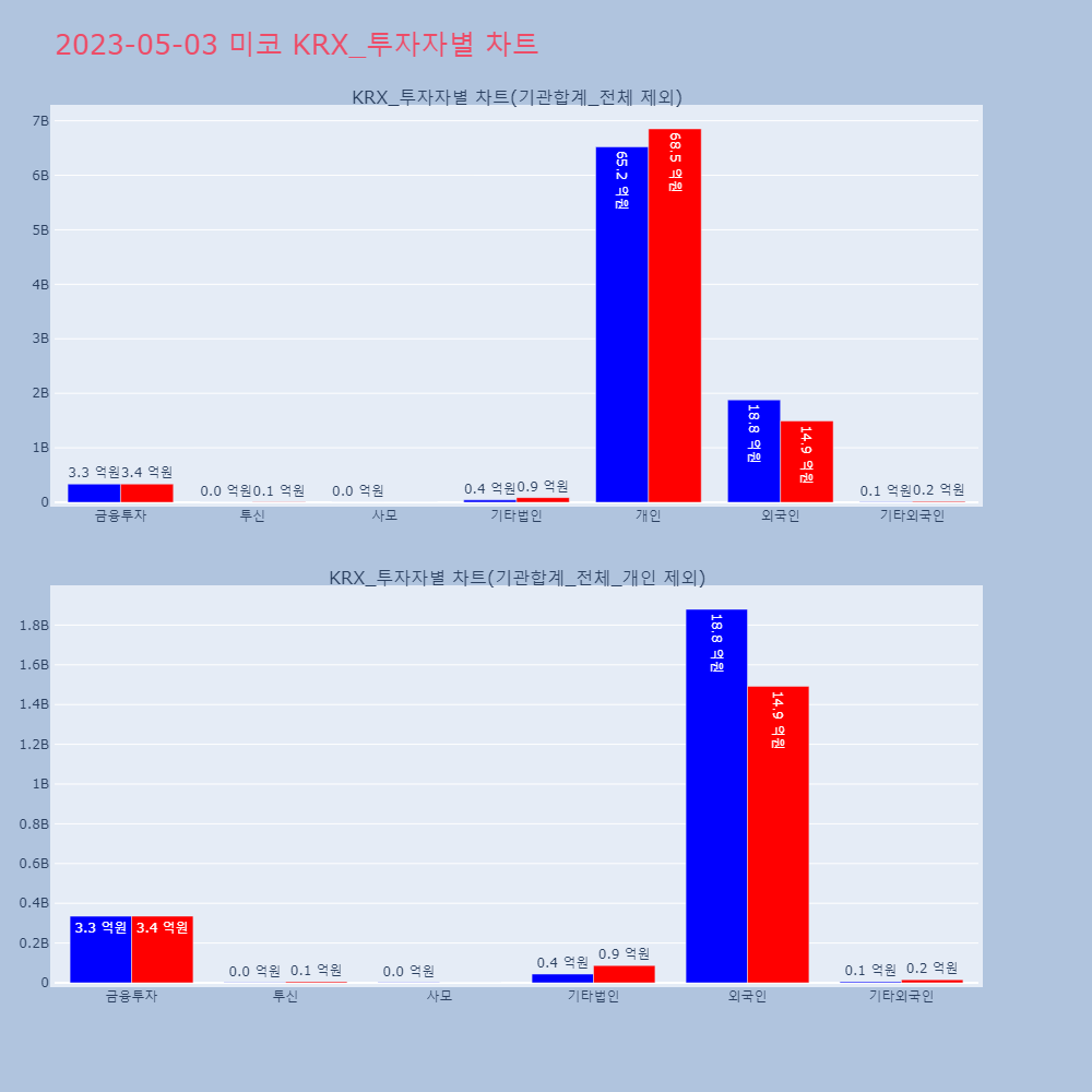 | 투자기관 | 매도량/금액(백) | 매수량/금액(백) | 순매수량/금액(백) |