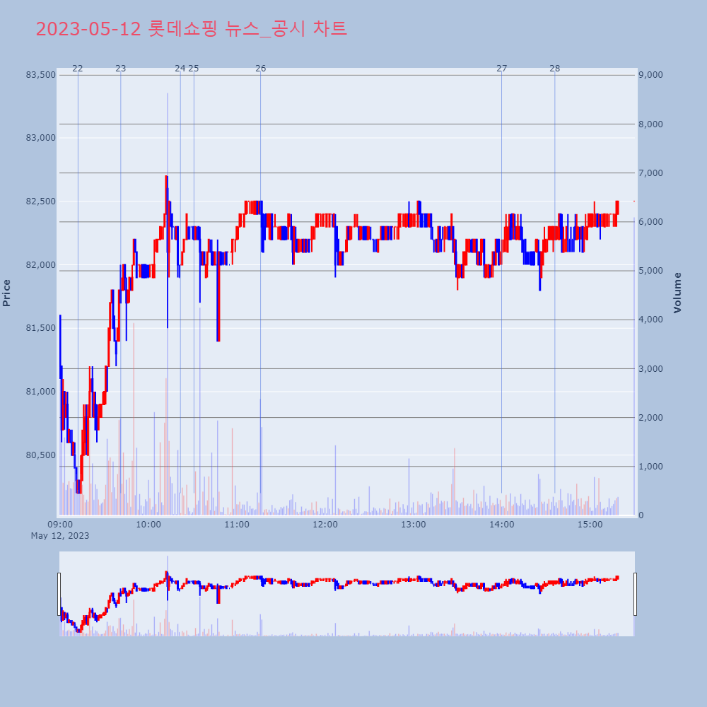 | 10 | 롯데쇼핑, 1분기 영업익 1125억원… 전년대비 64% ↑ 제목 : 롯데쇼핑, 1분기 영업익 1125억원… 전년대 | 인포스탁 | 롯데쇼핑 | 2023-05-11 16:02:20 |