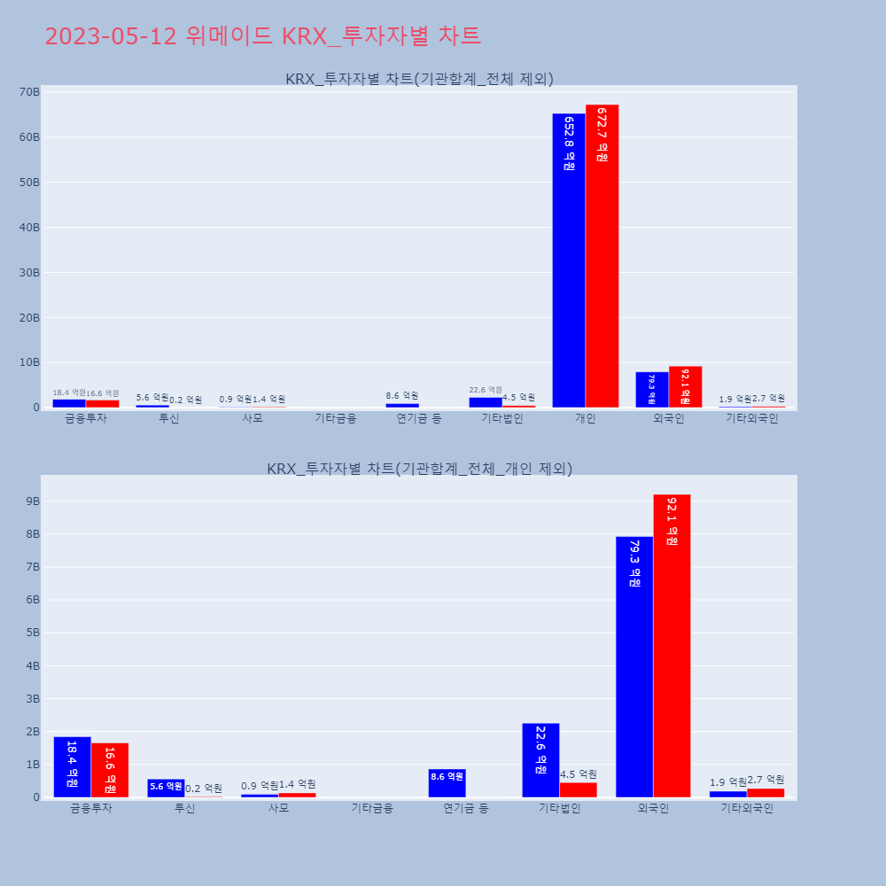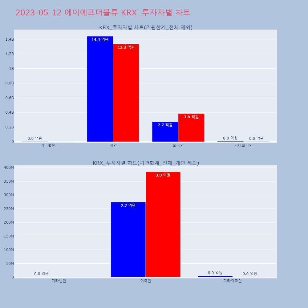 | 투자기관 | 매도량/금액(백) | 매수량/금액(백) | 순매수량/금액(백) |