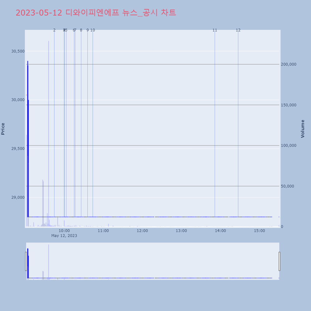 | 11 | [특징주] 디와이피엔에프·신대양제지, CFD 매물 폭탄 ‘급락’12일 장중 디와이피엔에프, 신대양제지 주가가 급락하고 | 조선경제 | 디와이피엔에프 | 2023-05-12 13:51:27 |