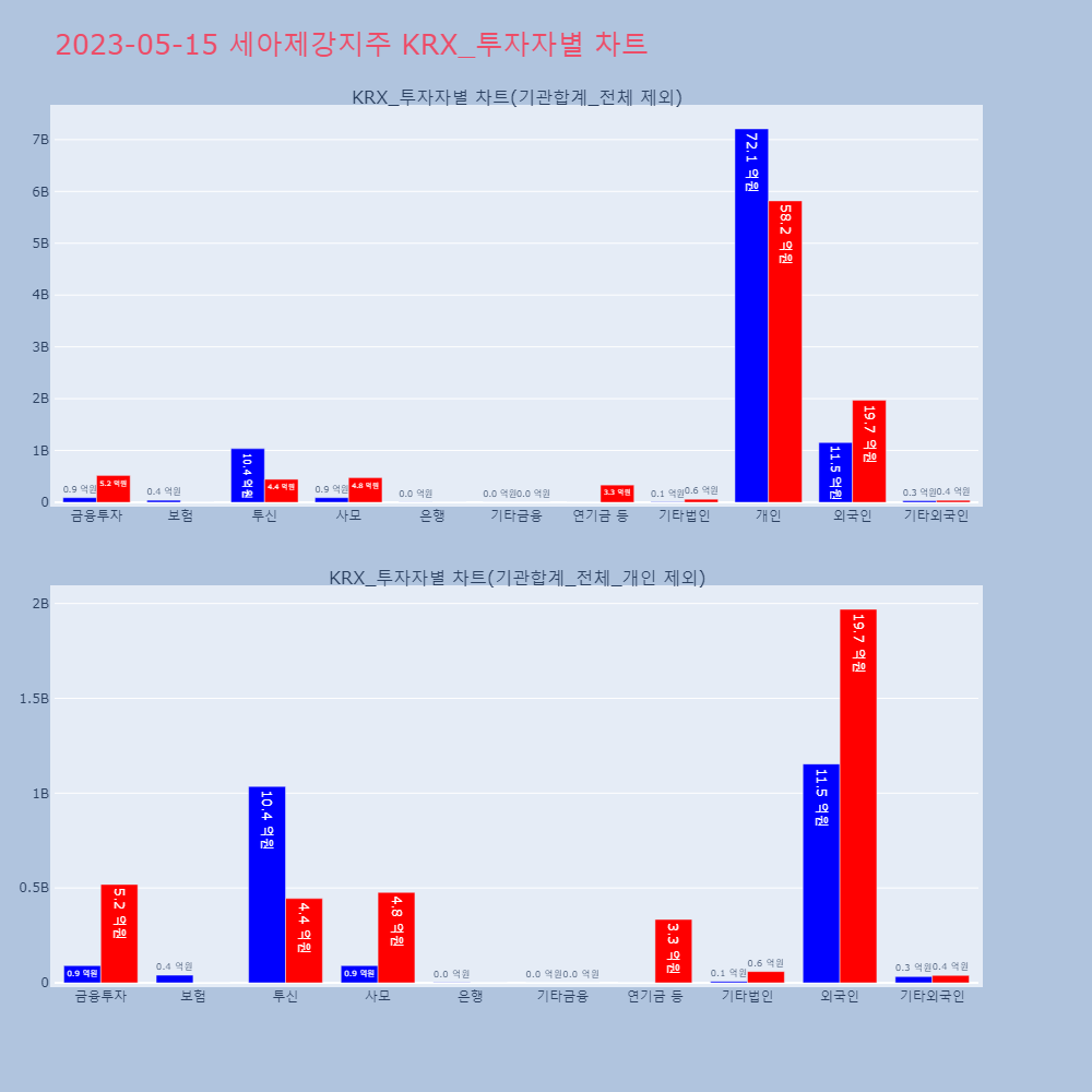 | 투자기관 | 매도량/금액(백) | 매수량/금액(백) | 순매수량/금액(백) |