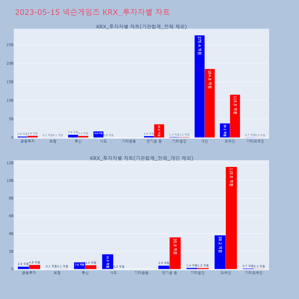 | 투자기관 | 매도량/금액(백) | 매수량/금액(백) | 순매수량/금액(백) |