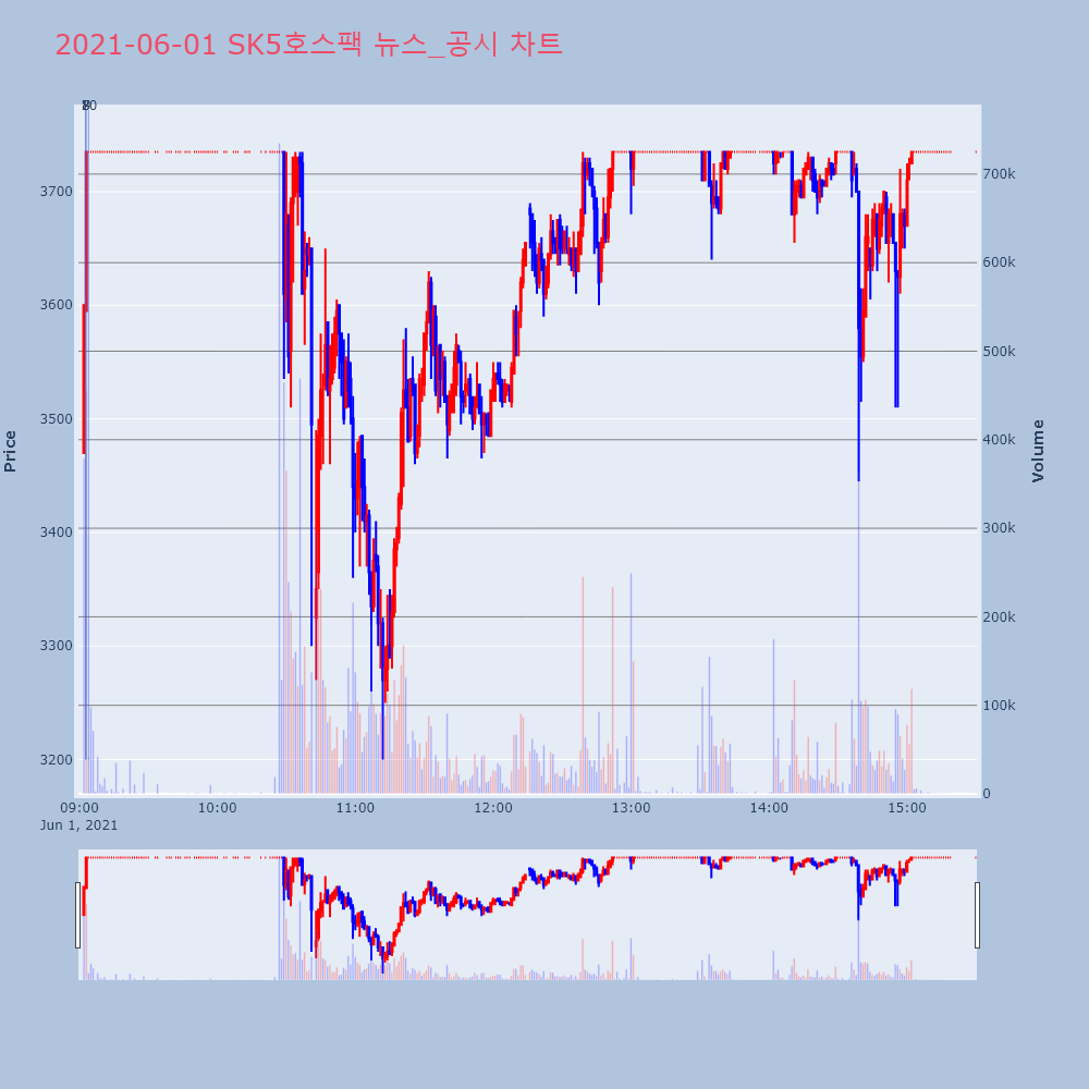 | 7 | 3 | SK5호스팩, +9.03% VI 발동SK5호스팩(337450)이 VI가 발동했다. 전일 대 | 조선경제 | SK5호스팩 | 2021-05-31 10:06:13 |