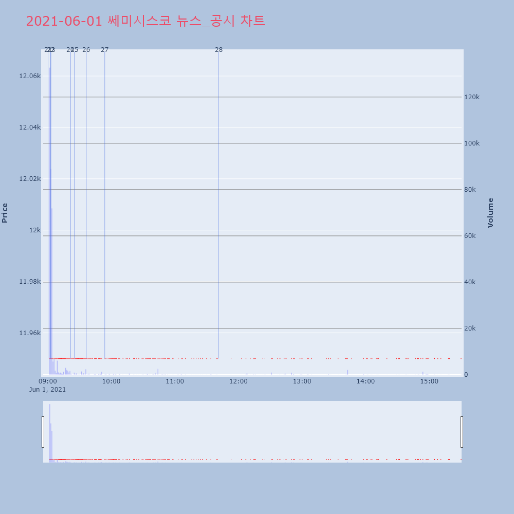 | 27 | 1 | 쎄미시스코, 0.00% VI 발동쎄미시스코(136510)가 VI가 발동했다. 현재 7, | 조선경제 | 쎄미시스코 | 2021-05-31 09:00:08 |