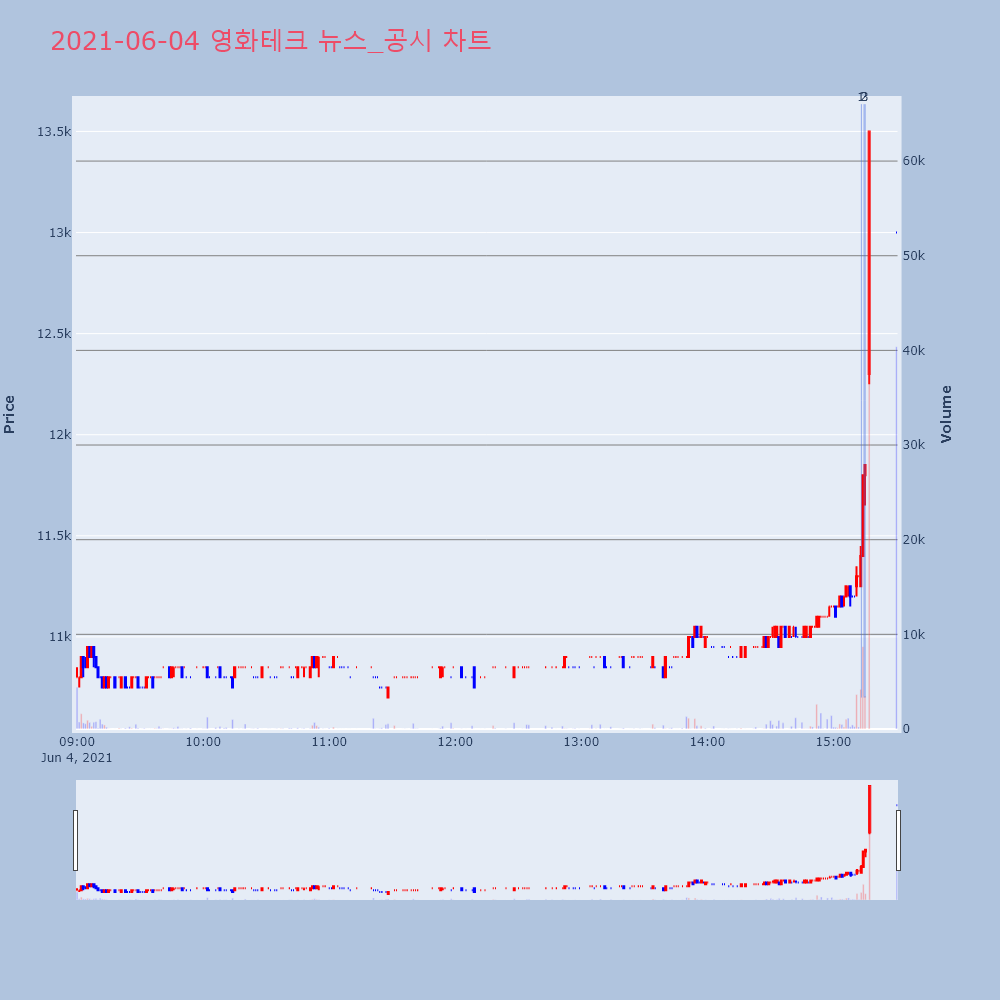 | 1 | 3 | 영화테크, +11.79% VI 발동영화테크(265560)가 VI가 발동했다. 전일 대비 | 조선경제 | 영화테크 | 2021-06-04 15:15:05 |