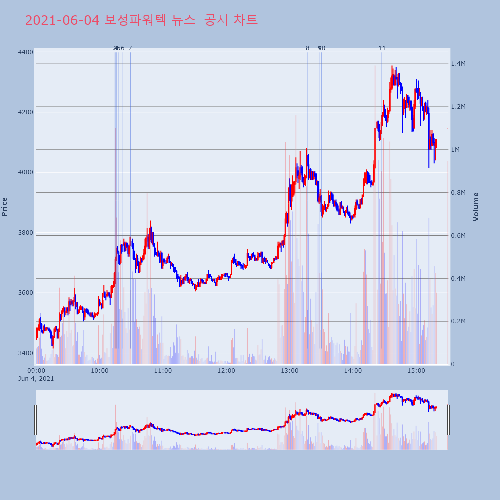 | 4 | 7 | 보성파워텍, +10.19% VI 발동보성파워텍(006910)이 VI가 발동했다. 전일 대비 | 조선경제 | 보성파워텍 | 2021-06-04 10:29:16 |