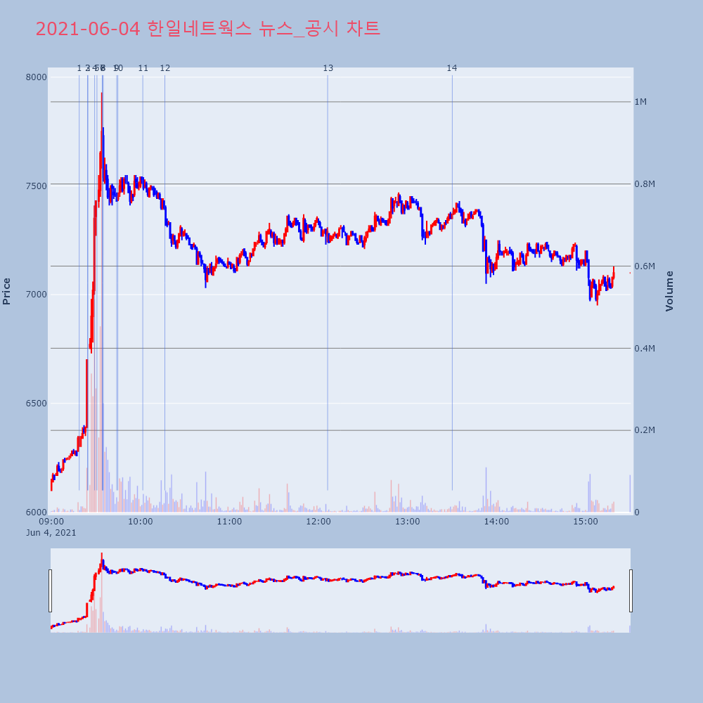 6 | 8 | 한일네트웍스(046110), 52주 신고가 한일네트웍스(046110)는 당일 7,660원까지 오르 | 헤럴드경제 | 한일네트웍스 | 2021-06-04 09:34:59 |