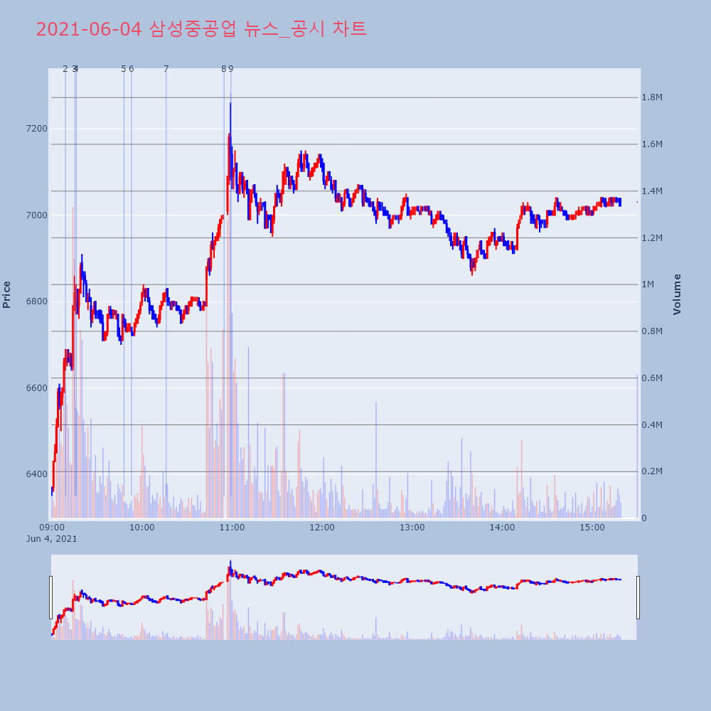 1 | 8 | 삼성중공업, +9.20% VI 발동삼성중공업(010140)이 VI가 발동했다. 전일 대비 | 조선경제 | 삼성중공업 | 2021-06-04 10:54:43 |