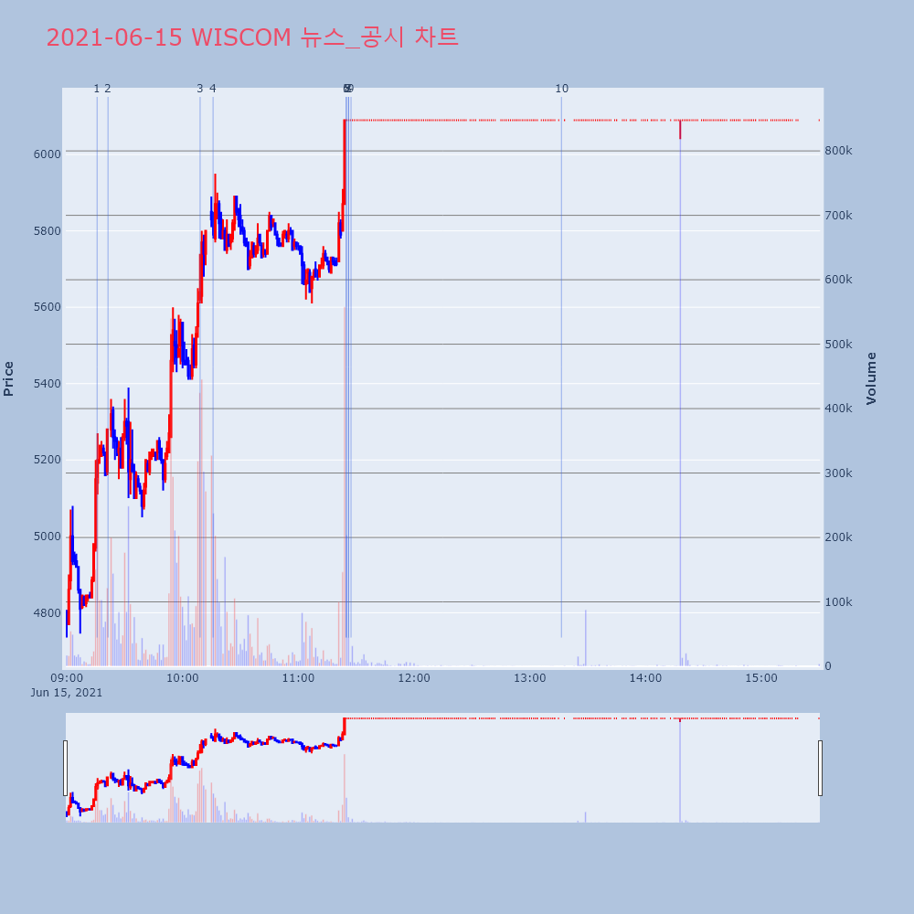 4 | 8 | 'WISCOM' 52주 신고가 경신, 단기·중기 이평선 정배열로 상승세◆ 차트 분석- 단기·중기 이평선 정배열로 상승세 | 한경/증권 | WISCOM | 2021-06-15 11:26:05 |
