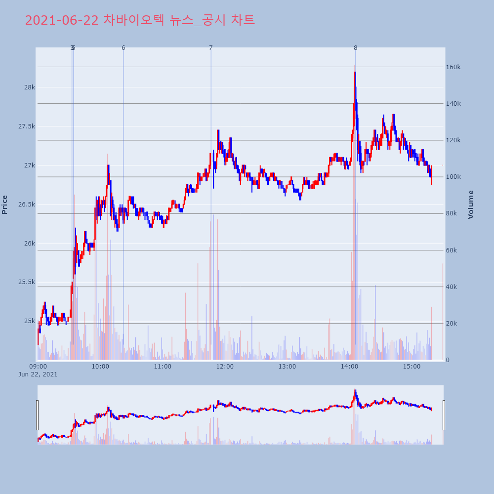 | 1 | 7 | 차바이오텍, +9.92% VI 발동차바이오텍(085660)이 VI가 발동했다. 전일 대비 | 조선경제 | 차바이오텍 | 2021-06-22 11:46:39 |