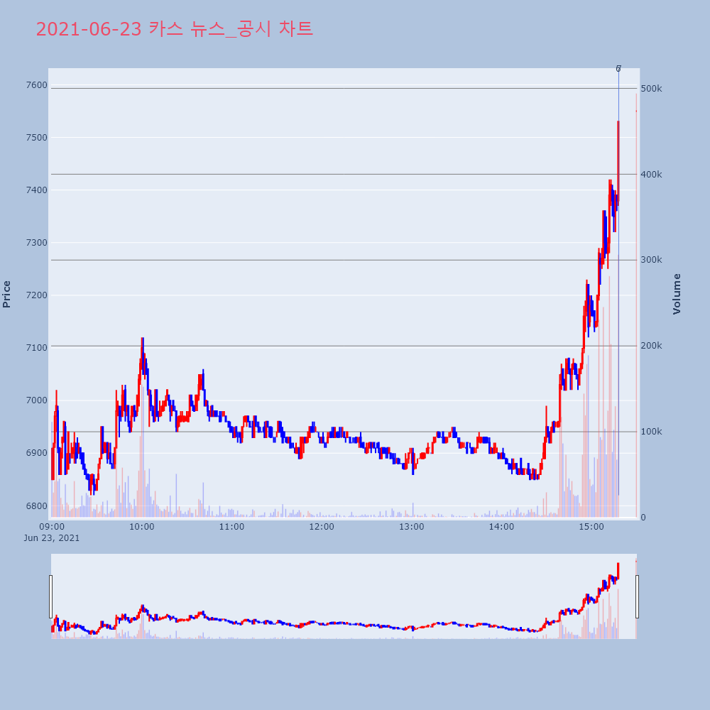 | 1 | 7 | 카스, +8.19% VI 발동카스(016920)가 VI가 발동했다. 전일 대비 8. | 조선경제 | 카스 | 2021-06-23 15:18:17 |