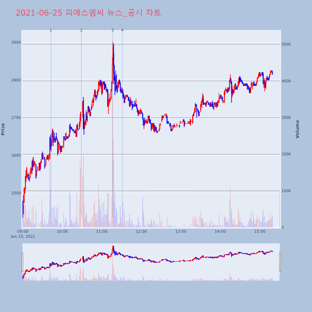 | 0 | 4 | [장중수급포착] 피에스엠씨, 외국인 56.58만 주 대량 순매수... 주가 +9.27[서울=뉴스핌] 로보뉴스 = 25일 11시 30분 현재 | 뉴스핌 | 피에스엠씨 | 2021-06-25 11:30:59 |