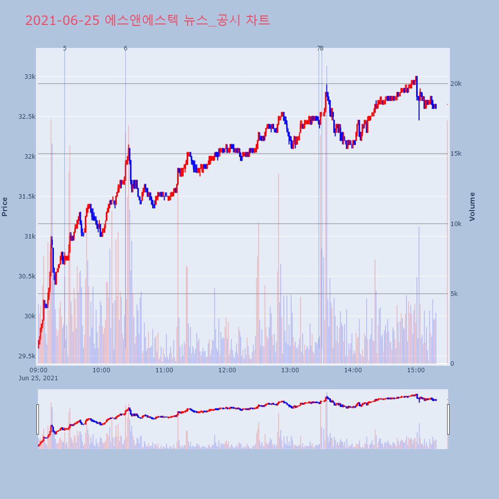 | 3 | 6 | [장중수급포착] 에스앤에스텍, 외국인/기관 동시 순매수… 주가 +7.51% [서울=뉴스핌] 로보뉴스 = 25일 10시 15분 현재 | 뉴스핌 | 에스앤에스텍 | 2021-06-25 10:23:03 |