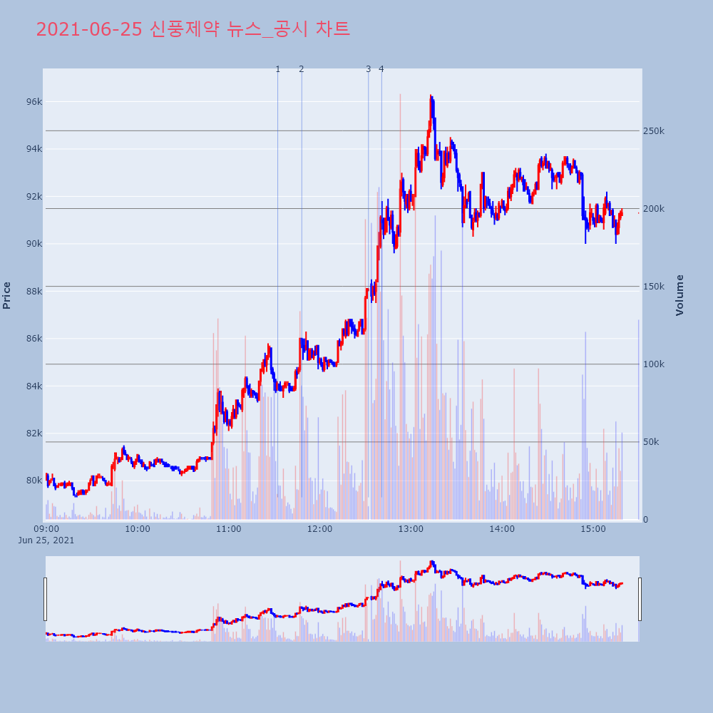 | 3 | 1 | [장중수급포착] 신풍제약, 외국인/기관 동시 순매수… 주가 +5.13% [서울=뉴스핌] 로보뉴스 = 25일 11시 30분 현재 | 뉴스핌 | 신풍제약 | 2021-06-25 11:32:21 |