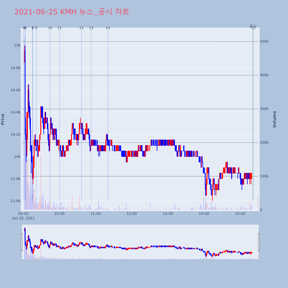 | 15 | 3 | KMH, 546억원 규모 자사주 취득 결정[머니투데이 김태현 기자] KMH는 546억원 규모의 | 머니투데이 | KMH | 2021-06-25 08:43:40 |