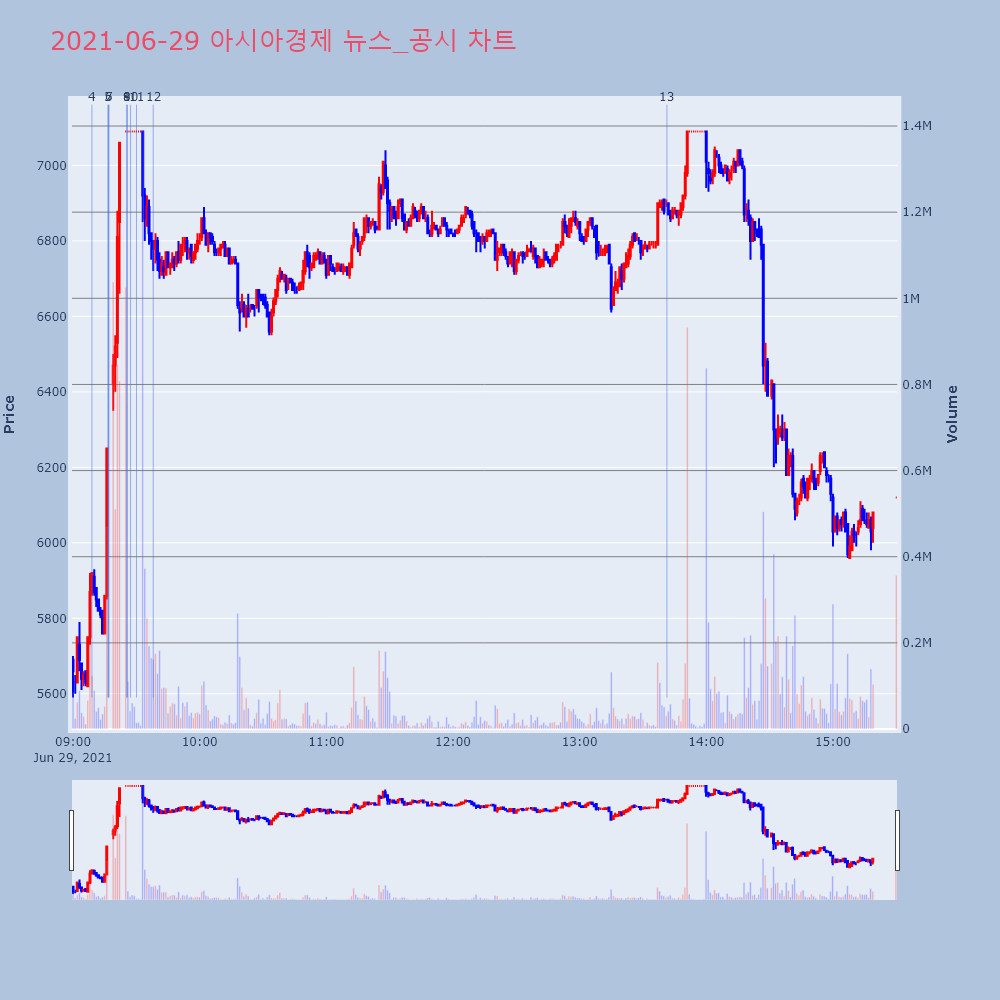 | 14 | 1 | 아시아경제, 0.00% VI 발동아시아경제(127710)가 VI가 발동했다. 현재 5, | 조선경제 | 아시아경제 | 2021-06-28 09:00:04 |