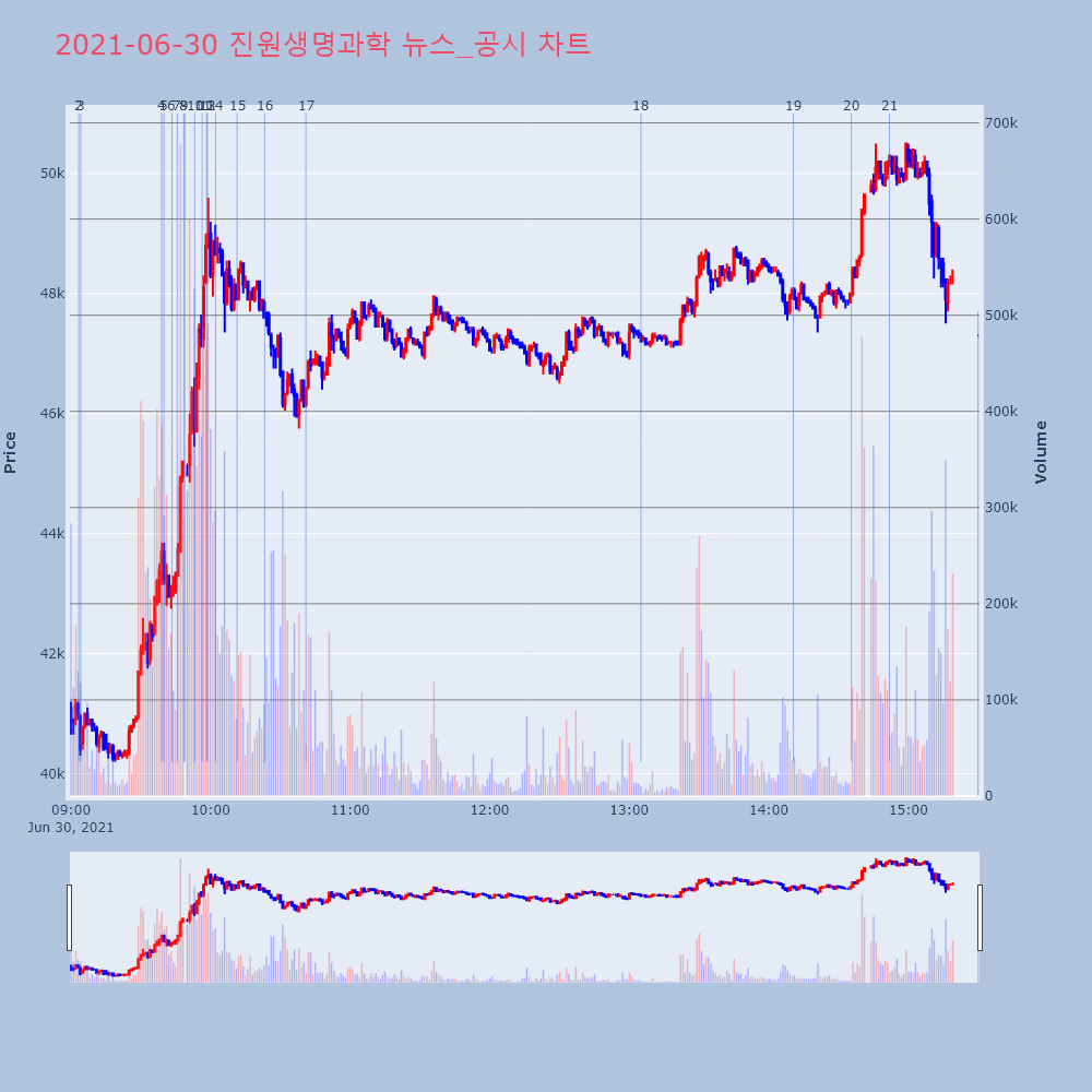 | 3 | 19 | '진원생명과학' 52주 신고가 경신, 단기·중기 이평선 정배열로 상승세◆ 차트 분석- 단기·중기 이평선 정배열로 상승세 | 한경/증권 | 진원생명과학 | 2021-06-30 14:10:34 |