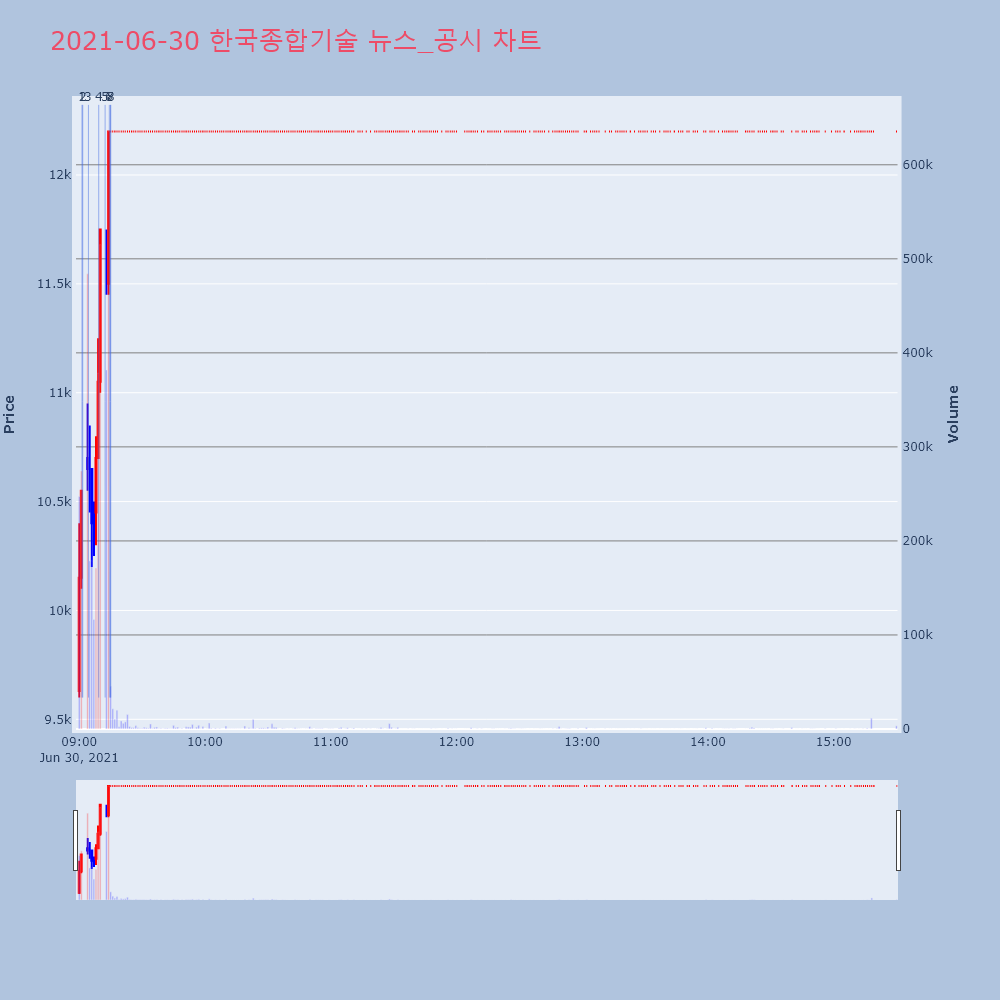| 1 | 8 | [이시각 상한가] 한국종합기술(▲2800) - 30일 오전 9시14분[이투데이/e2BOT 기자(e2bot@etoday.co | 이투데이 | 한국종합기술 | 2021-06-30 09:15:03 |