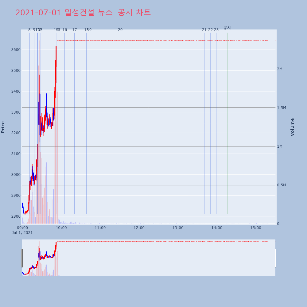 | 7 | 20 | [장중수급포착] 일성건설, 기관 49,000주 대량 순매수... 주가 +29.95% [서울=뉴스핌] 로보뉴스 = 01일 11시 30분 현재 | 뉴스핌 | 일성건설 | 2021-07-01 11:30:38 |