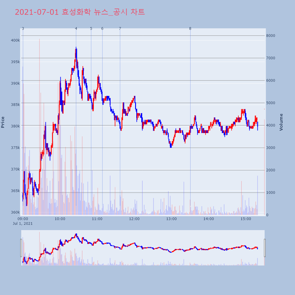 | 2 | 7 | [0701오전특징] 효성화학 어닝 서프라이즈 기대감에 급등 외 눈에 띄는 종제목 : [0701오전특징] 효성화학 어닝 서프라이즈 | 인포스탁 | 효성화학 | 2021-07-01 11:37:03 |