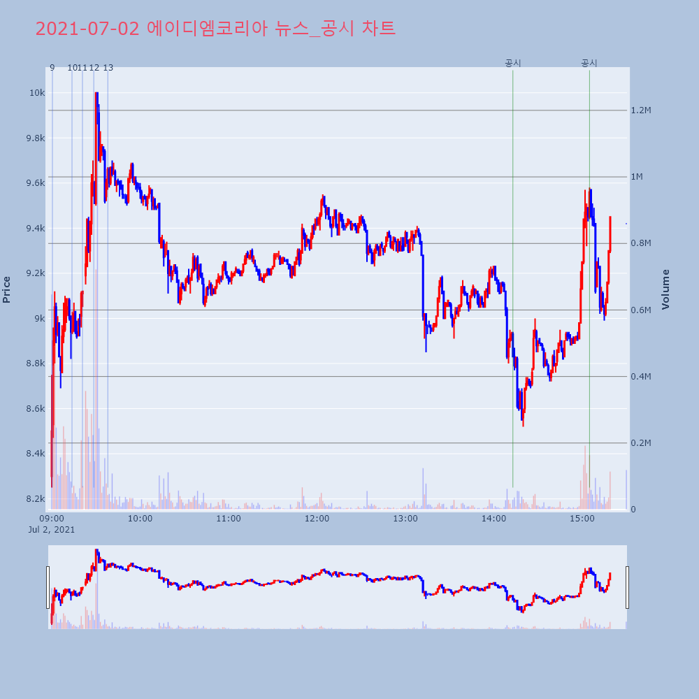 | 12 | 1 | [특징주] 에이디엠코리아, 경영권 분쟁에 급등세 제목 : [특징주] 에이디엠코리아, 경영권 분쟁에 급등 | 인포스탁 | 에이디엠코리아 | 2021-07-01 09:53:54 |