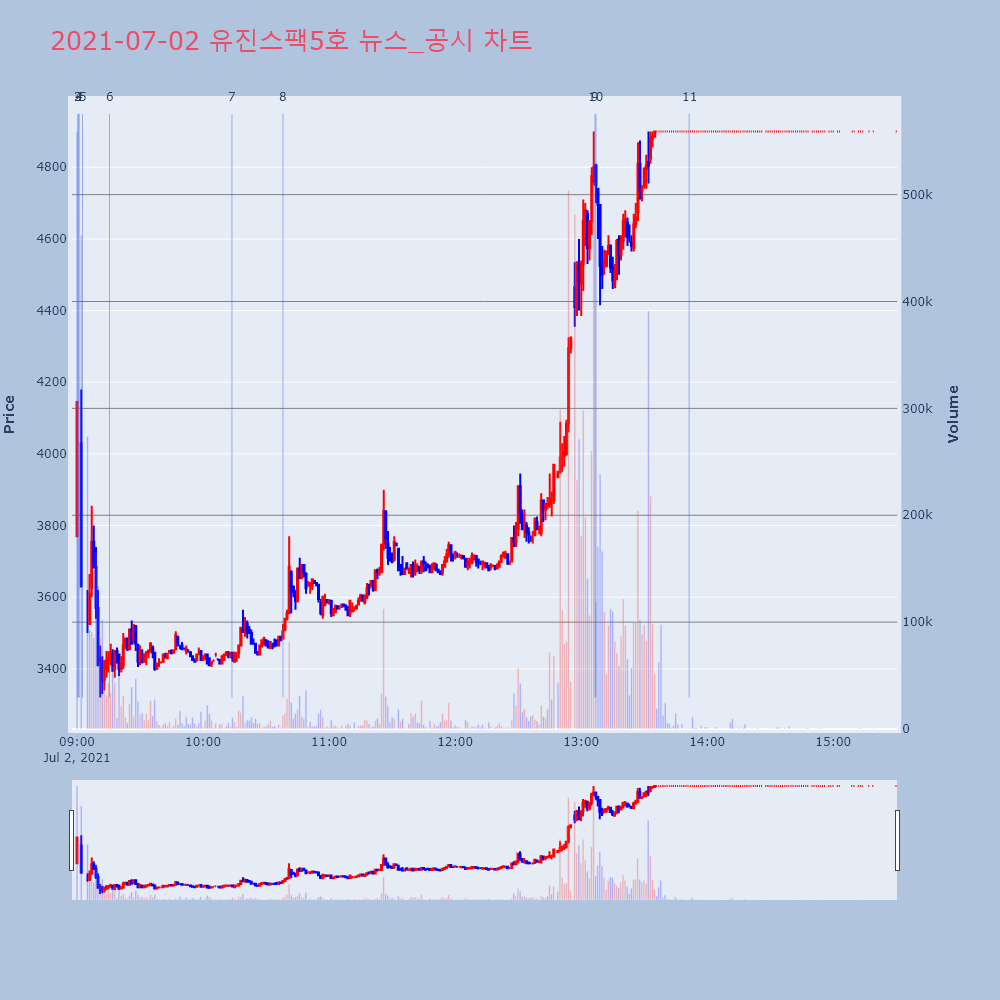 | 4 | 11 | [특징주]유진스팩5호, 포커스에이치엔에스와 합병 예심 통과에 '上'▶ 하이스탁론, 선취수수료 없는 월 0.2%대 최저금리 | 이데일리 | 유진스팩5호 | 2021-07-02 13:51:23 |