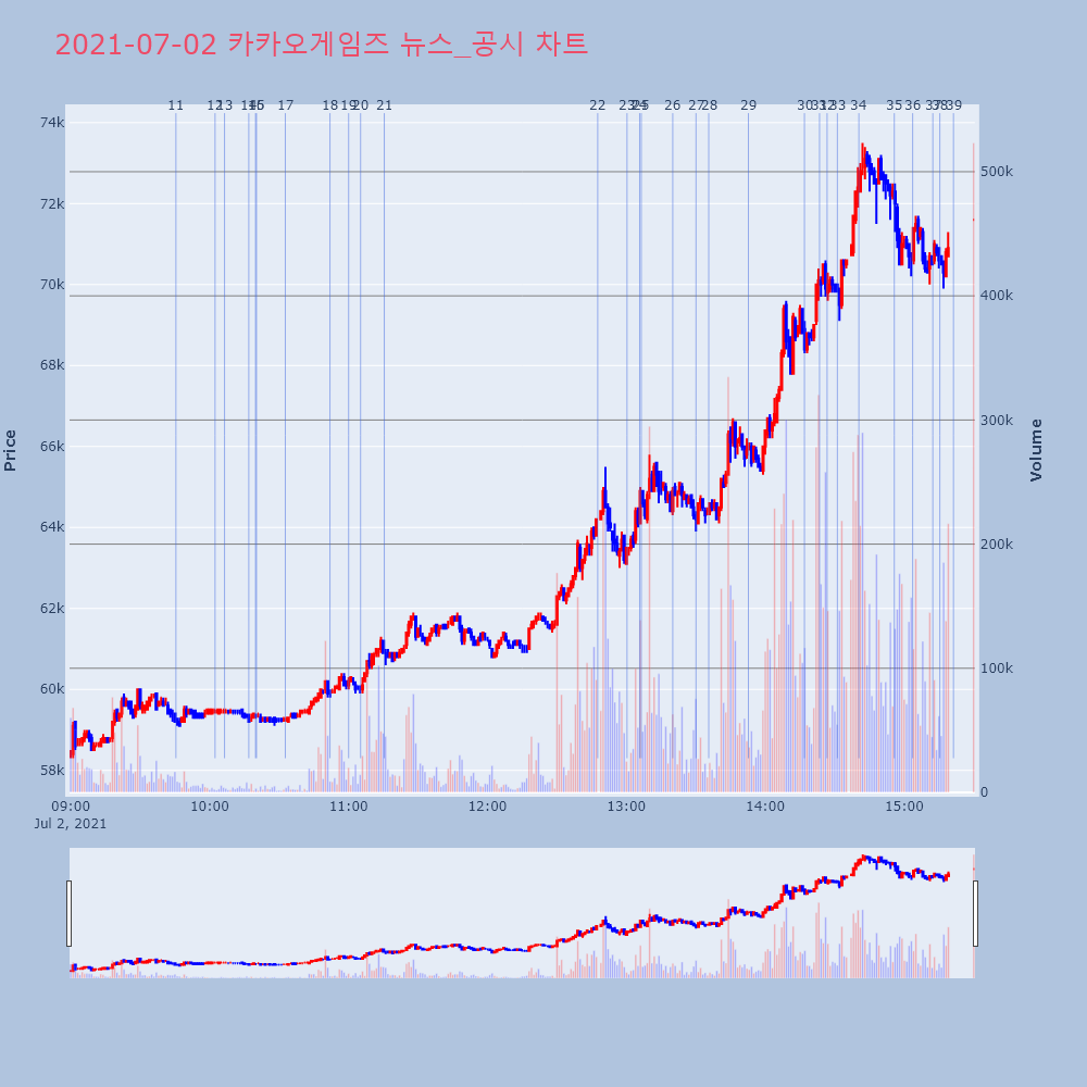| 27 | 22 | 카카오게임즈, +11.65% VI 발동카카오게임즈(293490)가 VI가 발동했다. 전일 대 | 조선경제 | 카카오게임즈 | 2021-07-02 12:47:37 |