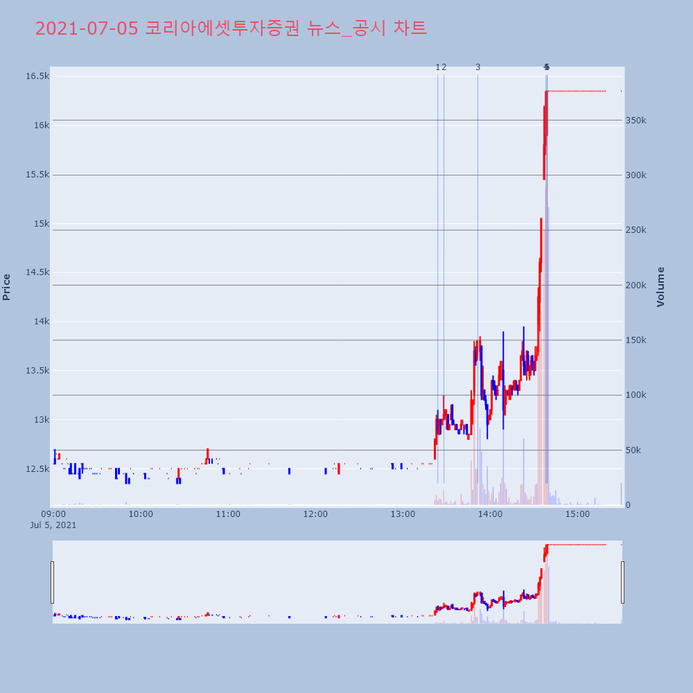 | 4 | 3 | 코리아에셋투자증권, +9.52% VI 발동코리아에셋투자증권(190650)이 VI가 발동했다. 전 | 조선경제 | 코리아에셋투자증권 | 2021-07-05 13:51:29 |