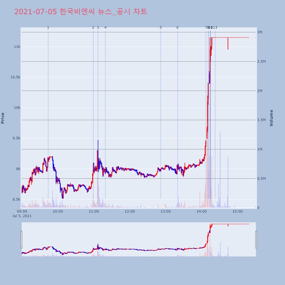 | 2 | 11 | 한국비엔씨, 52주 신고가 한국비엔씨(256840)는 당일 10,400원까지 오르 | 헤럴드경제 | 한국비엔씨 | 2021-07-05 14:14:50 |