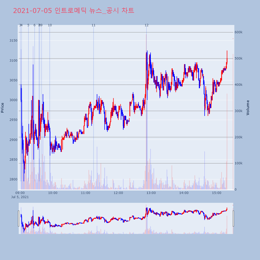 | 9 | 3 | 인트로메딕, 0.00% VI 발동인트로메딕(150840)이 VI가 발동했다. 현재 2, | 조선경제 | 인트로메딕 | 2021-07-05 09:00:31 |