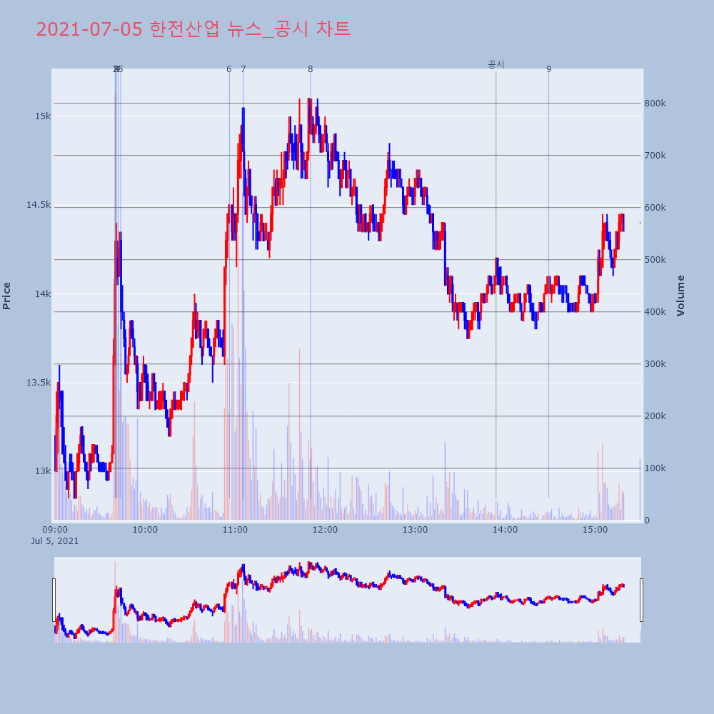 | 0 | 9 | 한전산업, 남동발전과의 연료환경설비 용역 계약 규모 정정▶ 하이스탁론, 선취수수료 없는 월 0.2%대 최저금리 | 이데일리 | 한전산업 | 2021-07-05 14:29:09 |