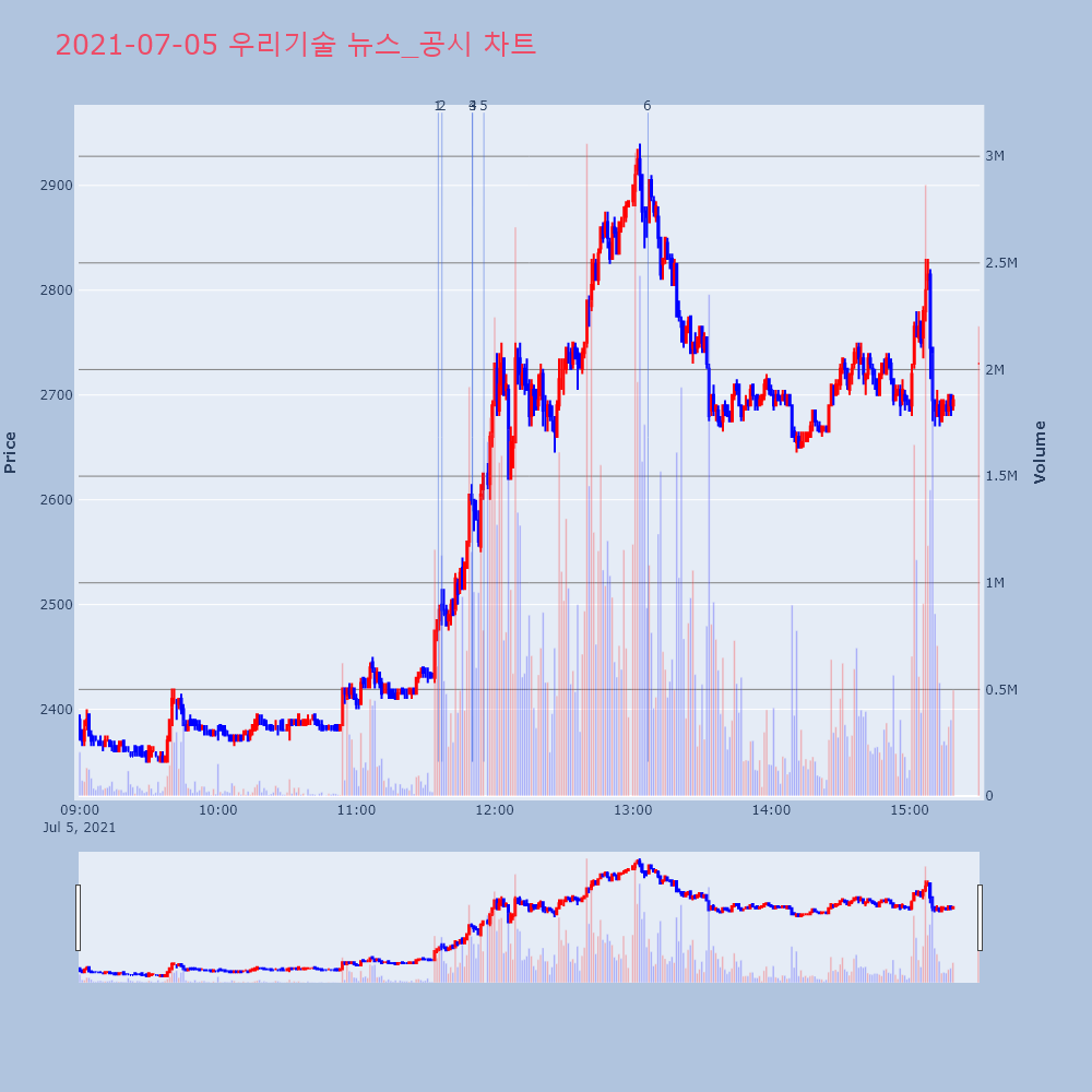| 1 | 5 | 우리기술, +10.99% VI 발동우리기술(032820)이 VI가 발동했다. 전일 대비 | 조선경제 | 우리기술 | 2021-07-05 11:55:19 |