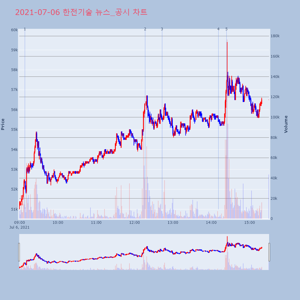 | 3 | 2 | 한전기술, +11.26% VI 발동한전기술(052690)이 VI가 발동했다. 전일 대비 | 조선경제 | 한전기술 | 2021-07-06 12:16:36 |
