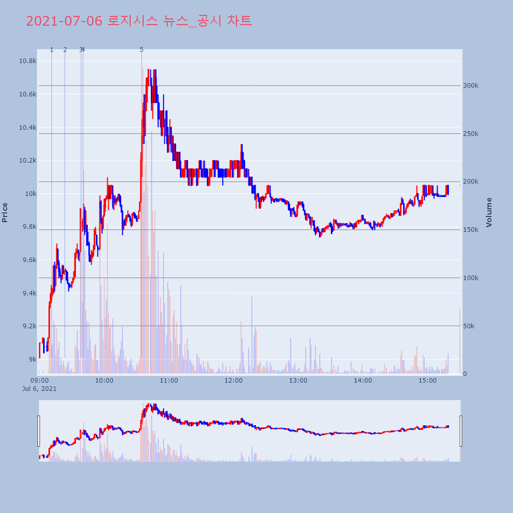 | 0 | 5 | 로지시스, +12.28% 상승폭 확대로지시스(067730)가 상승폭을 확대하고 있다. 전일 | 조선경제 | 로지시스 | 2021-07-06 10:34:44 |