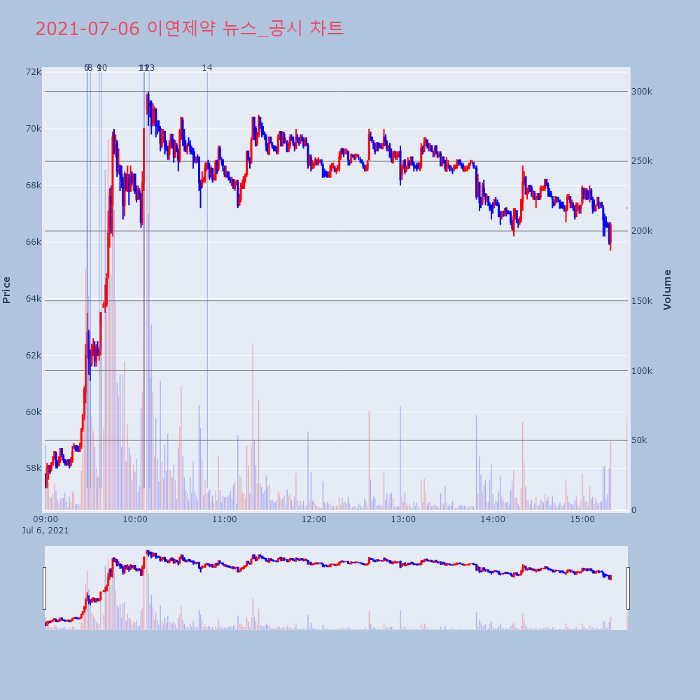 | 0 | 14 | 이연제약, 대규모 바이오 의약품 생산 능력 확보 소식에 '강세'이연제약이 충주 바이오 공장 준공으로 대규모 바이오 | 한경/증권 | 이연제약 | 2021-07-06 10:48:34 |