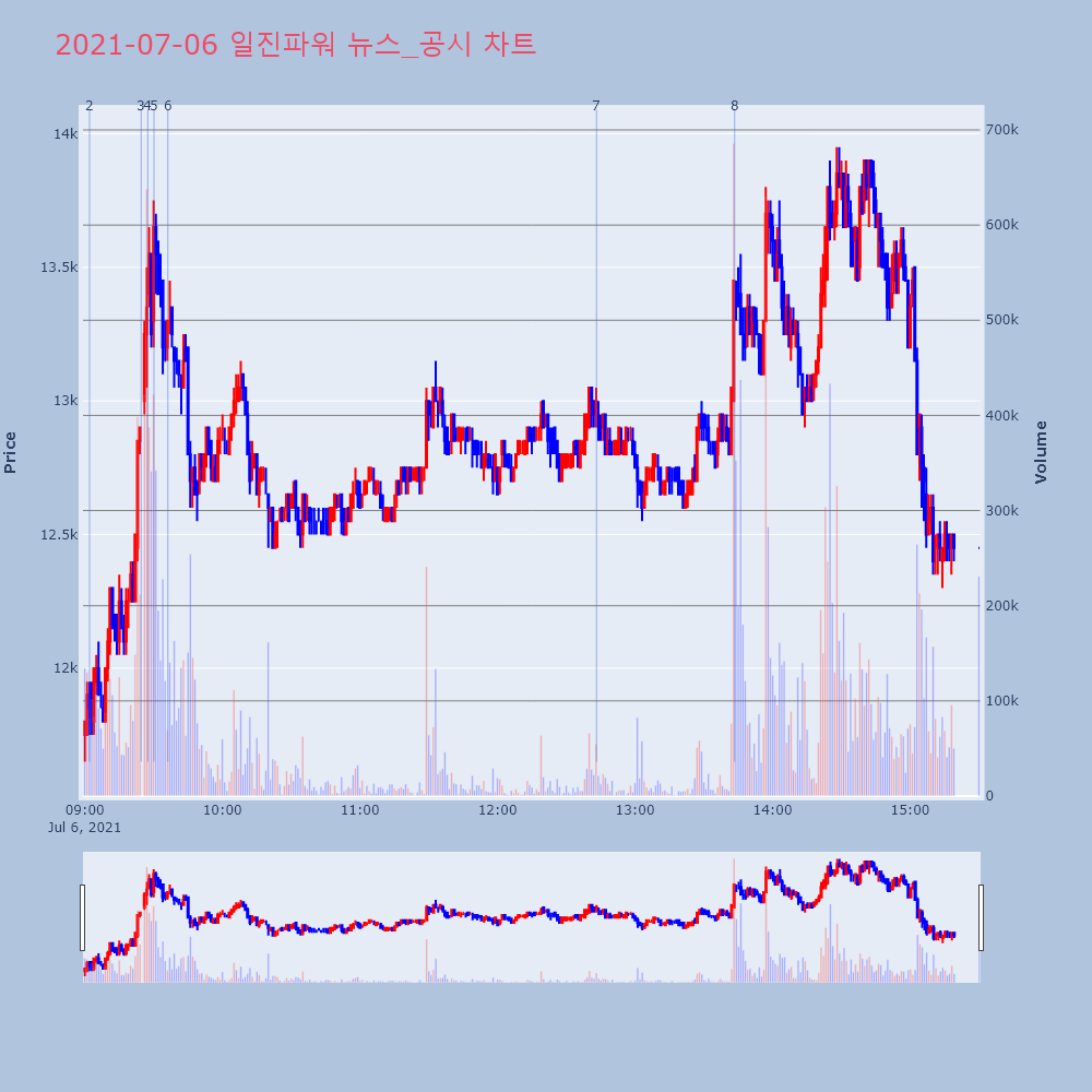 | 5 | 3 | 일진파워, +13.66% VI 발동일진파워(094820)가 VI가 발동했다. 전일 대비 | 조선경제 | 일진파워 | 2021-07-06 09:24:34 |